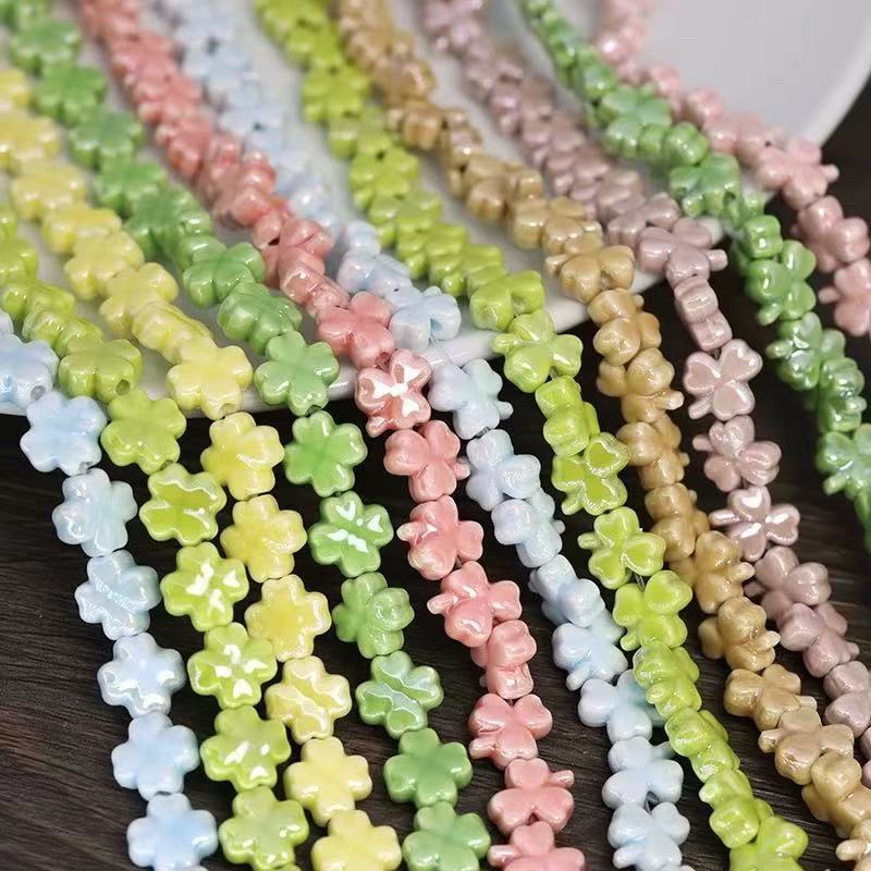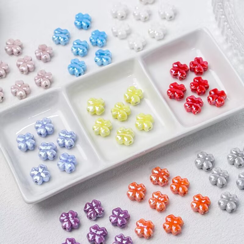 6*12mm【小清新】马卡龙色陶瓷四叶草DIY手链项链耳饰配饰材料