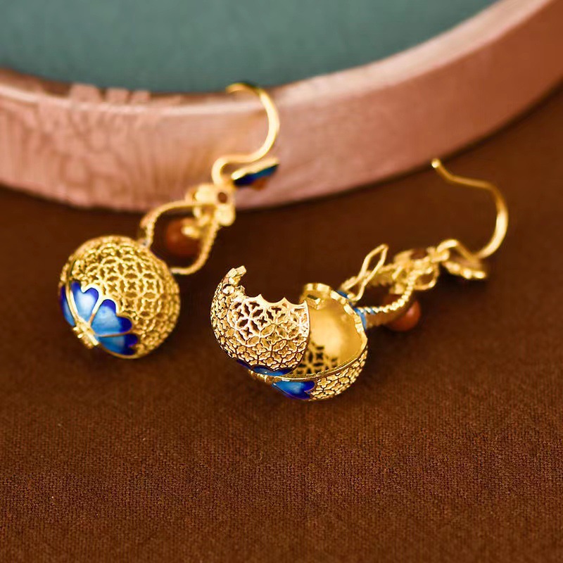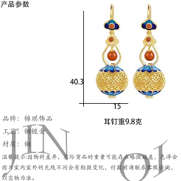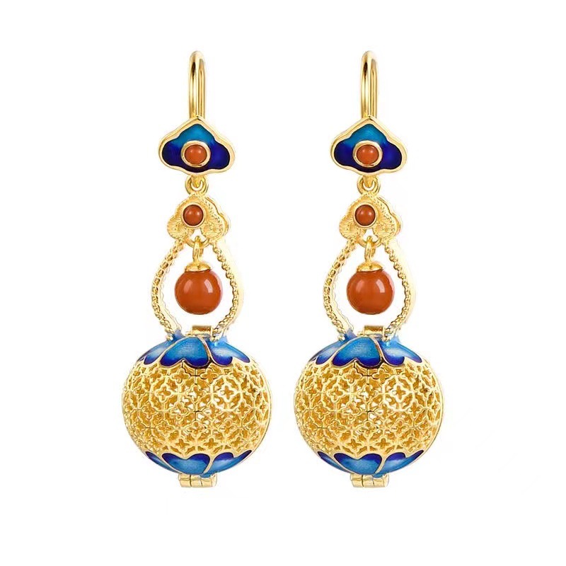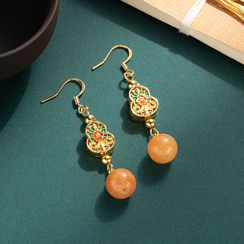 エスニックスタイル、国民的トレンド、ひょうたんエナメルクラフト、金メッキ模造蜜蝋、中国風イヤリング、女性用高級イヤリング、イヤリング