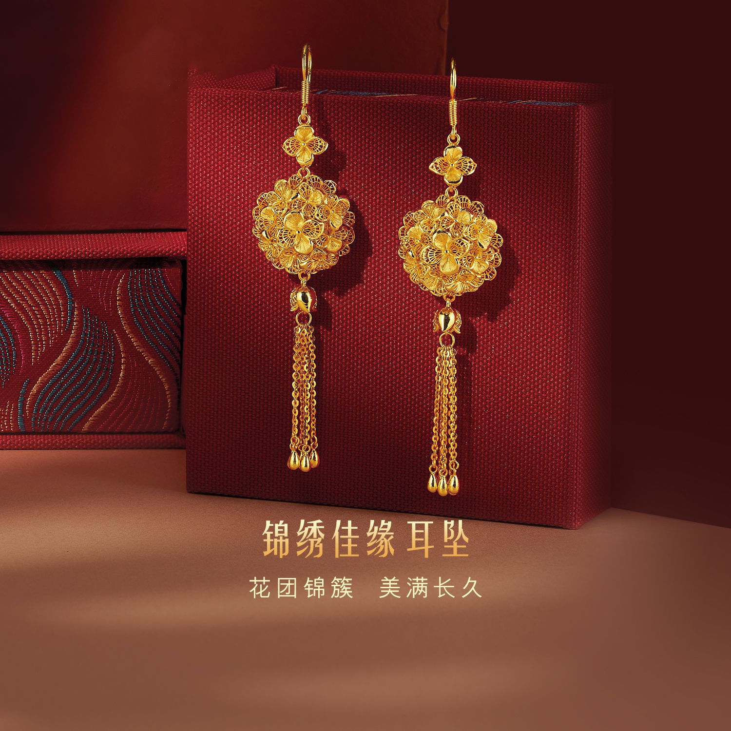 古法花丝锦绣佳缘耳环立体金色绣球花团繁复灵动流苏婚嫁轻奢耳饰