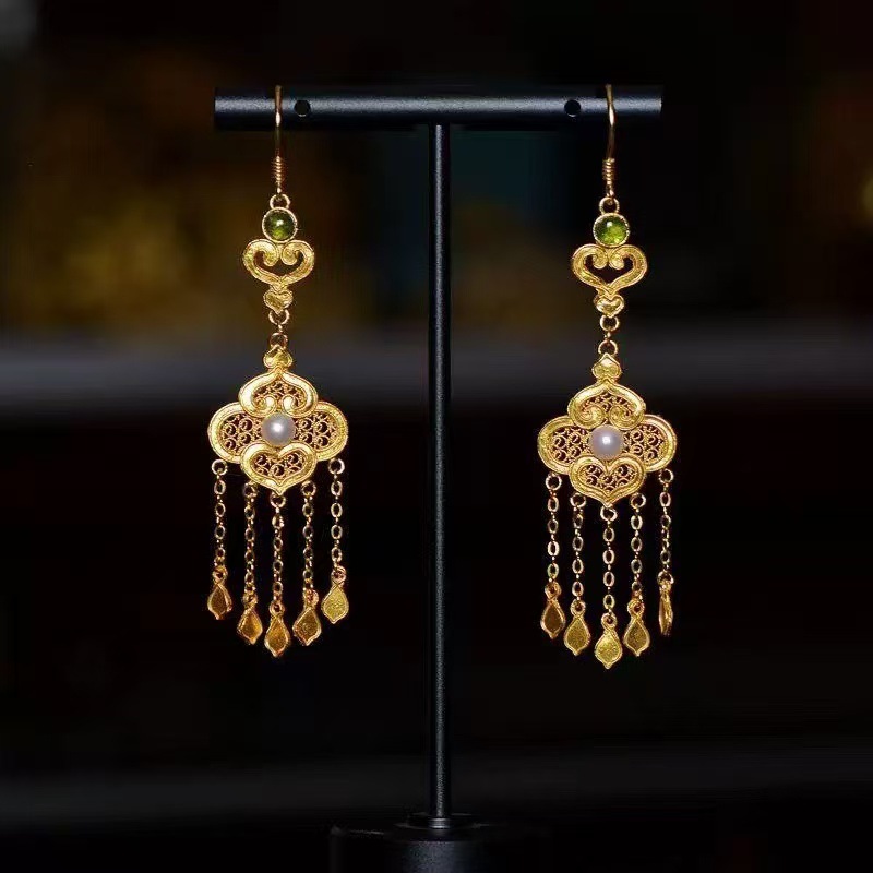 金メッキ模造古代明制復元流蘇イヤリングイヤリングイヤリング復古国風耳飾り漢服アクセサリー