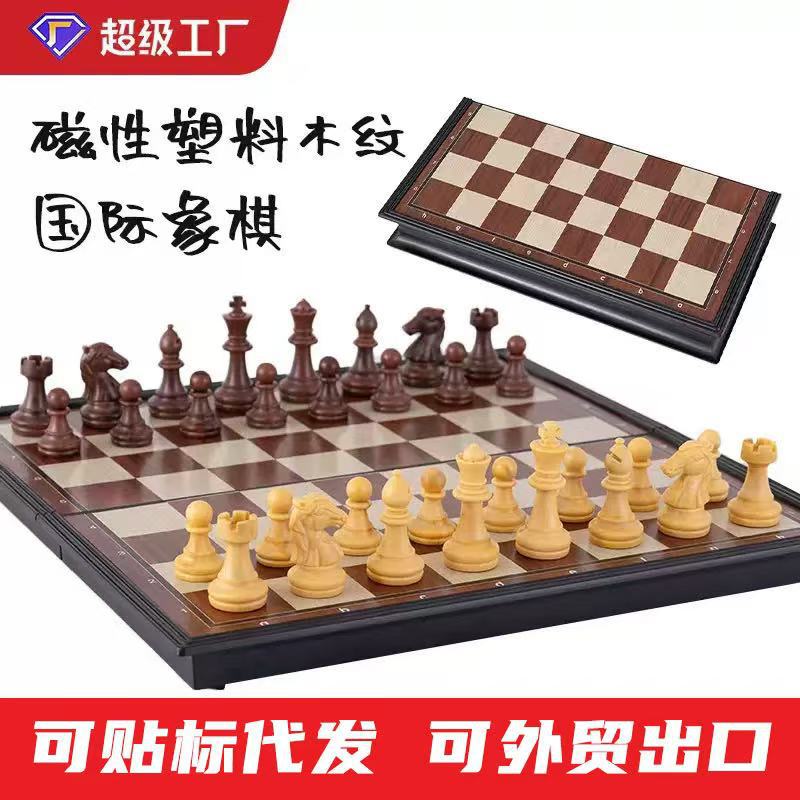 ヨーロッパとアメリカの国境を越えたチェスハイエンド磁気折りたたみセット模造木目黒と白のチェスの駒外国貿易スポット卸売