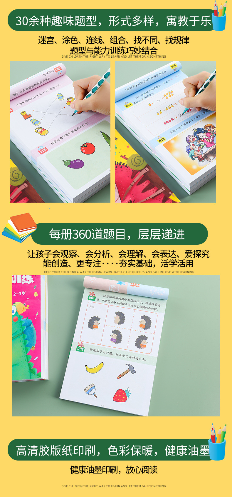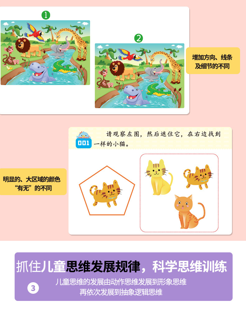 子供向け間違い探し集中力トレーニングブック、注意力トレーニング、3~6歳の幼稚園児の認知トレーニング、実践的