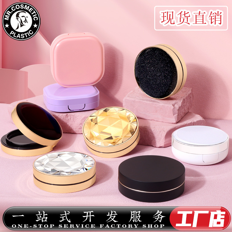 现货气垫盒磁铁卡扣大牌款15g钻面黑色BB霜遮瑕防晒气垫空盒子