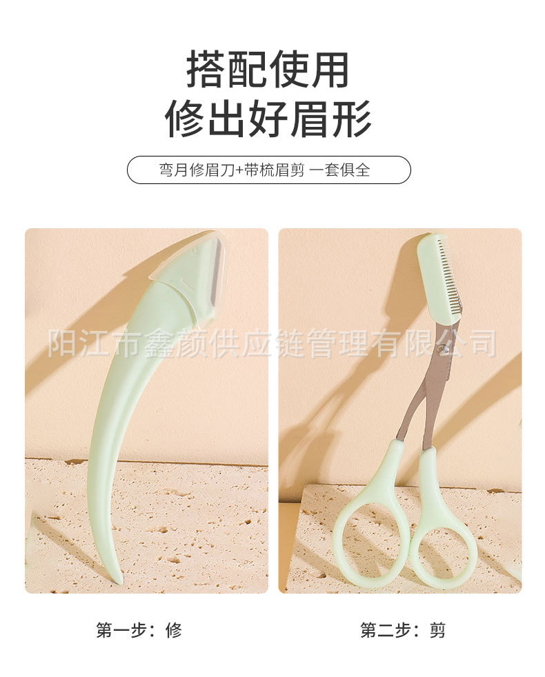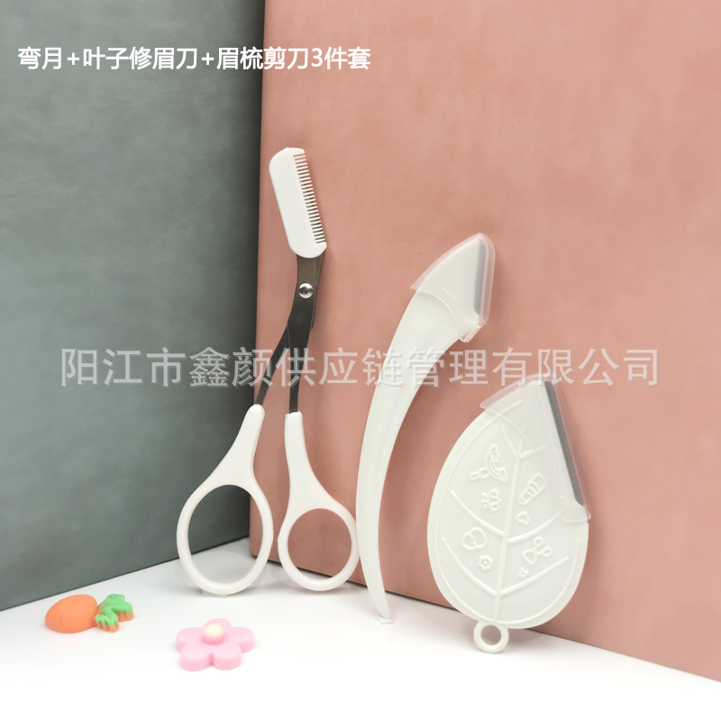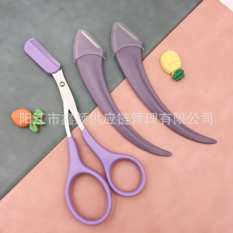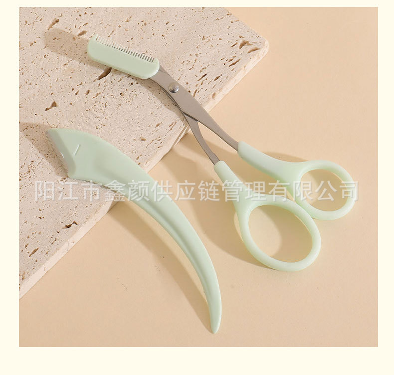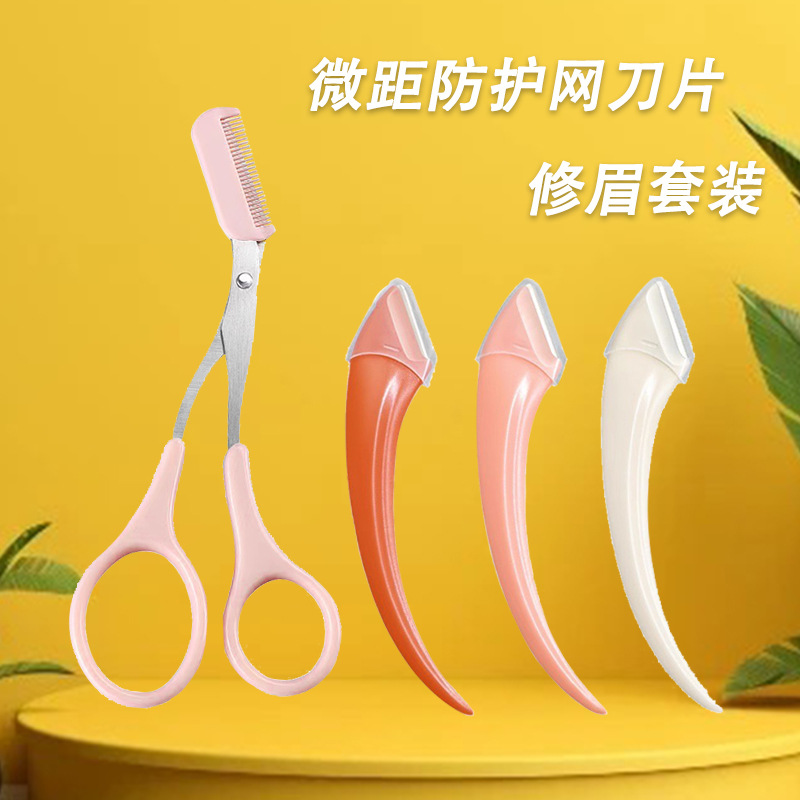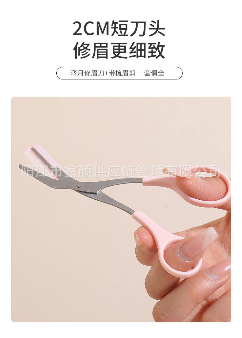 コーム付き眉毛トリミングはさみ、傷つきにくいシェービングナイフ、初心者眉毛トリミングツール、月眉トリミングナイフセット、ファイントリミング