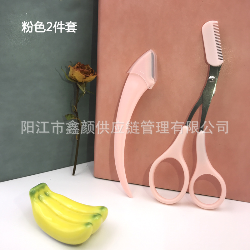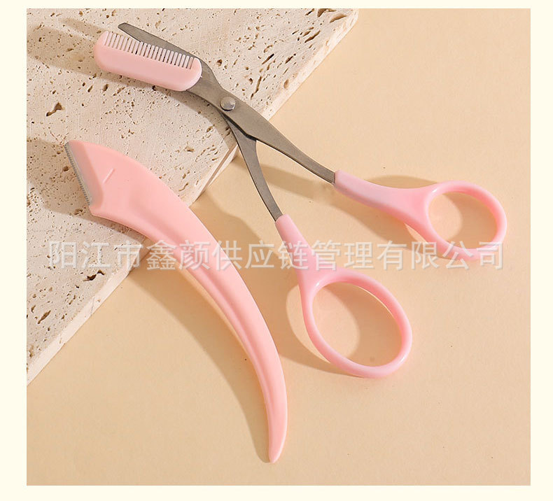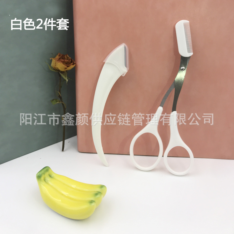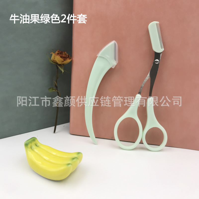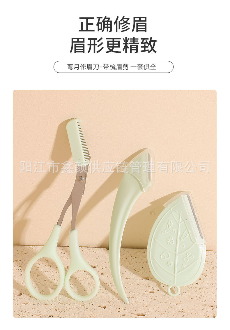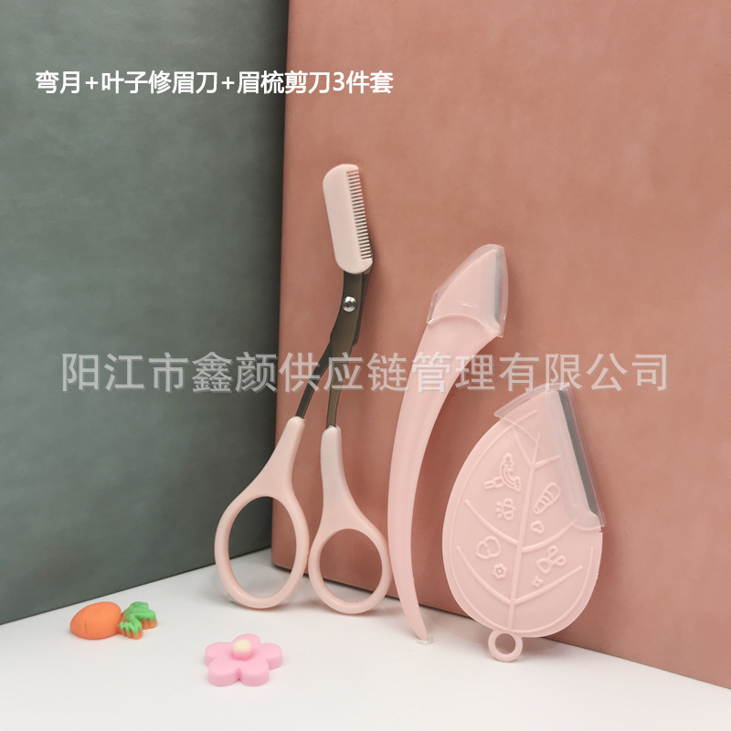 コーム付き眉毛トリミングはさみ、傷つきにくいシェービングナイフ、初心者眉毛トリミングツール、月眉トリミングナイフセット、ファイントリミング