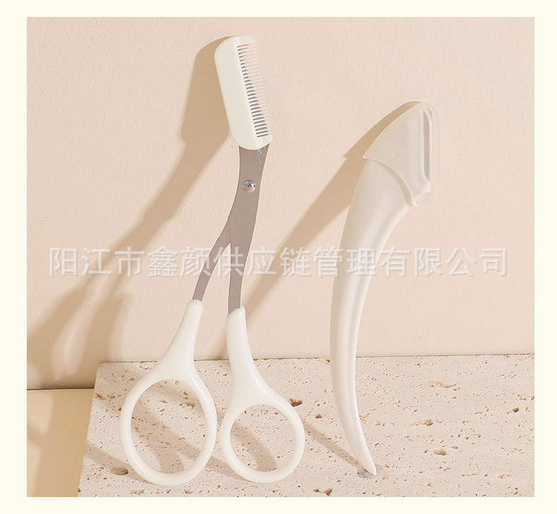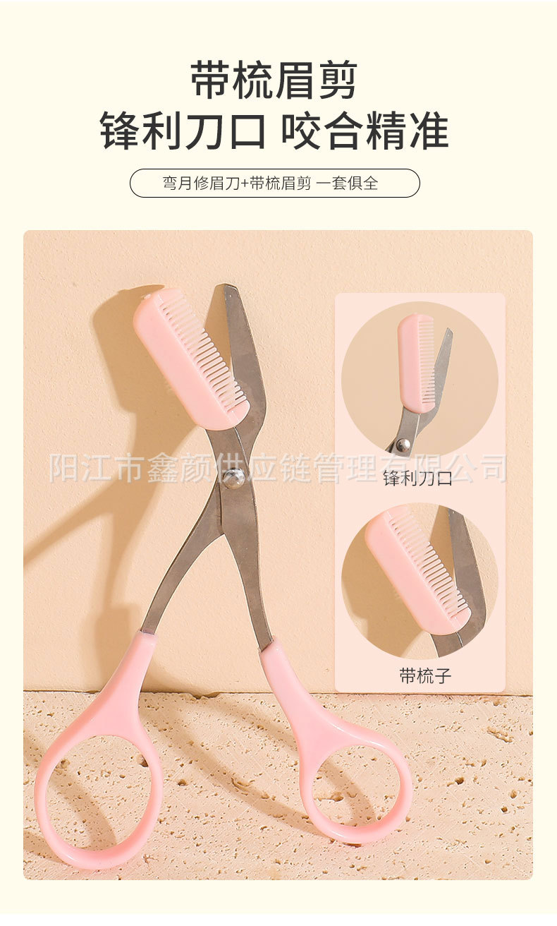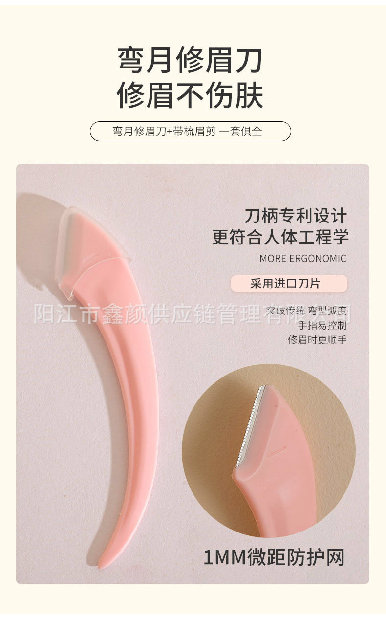 櫛付き眉毛トリマー、保護ネット付き刃、初心者向け眉毛トリミングツール、三日月型眉毛トリマー、安全眉毛トリマー