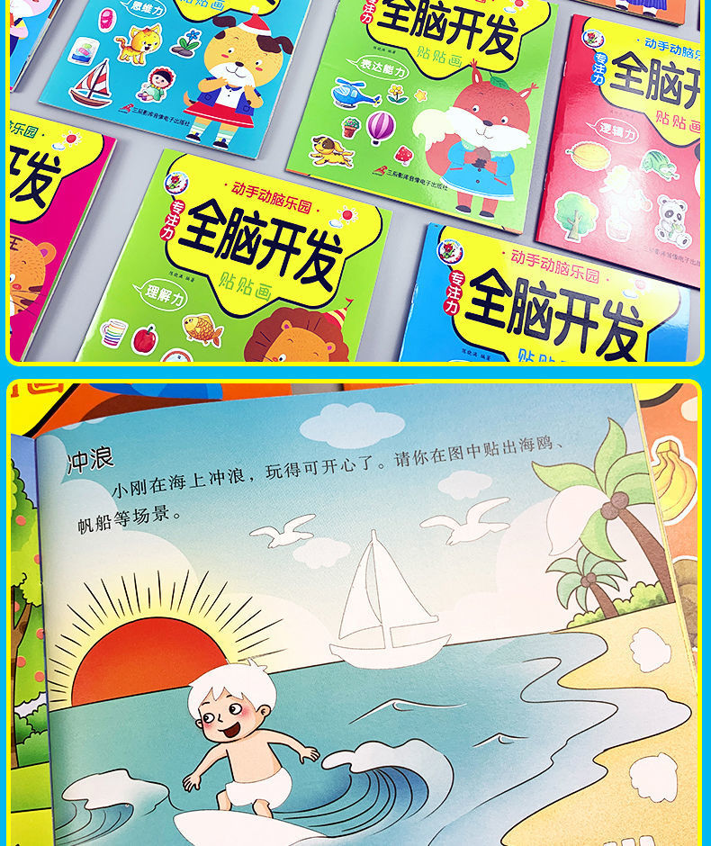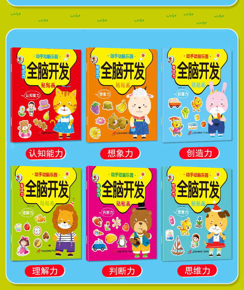 カラー 集中力全脳開発貼り絵【全12冊】,蒙氏数学ステッカー本【全セット6冊】,識字王ステッカー本【全8冊】