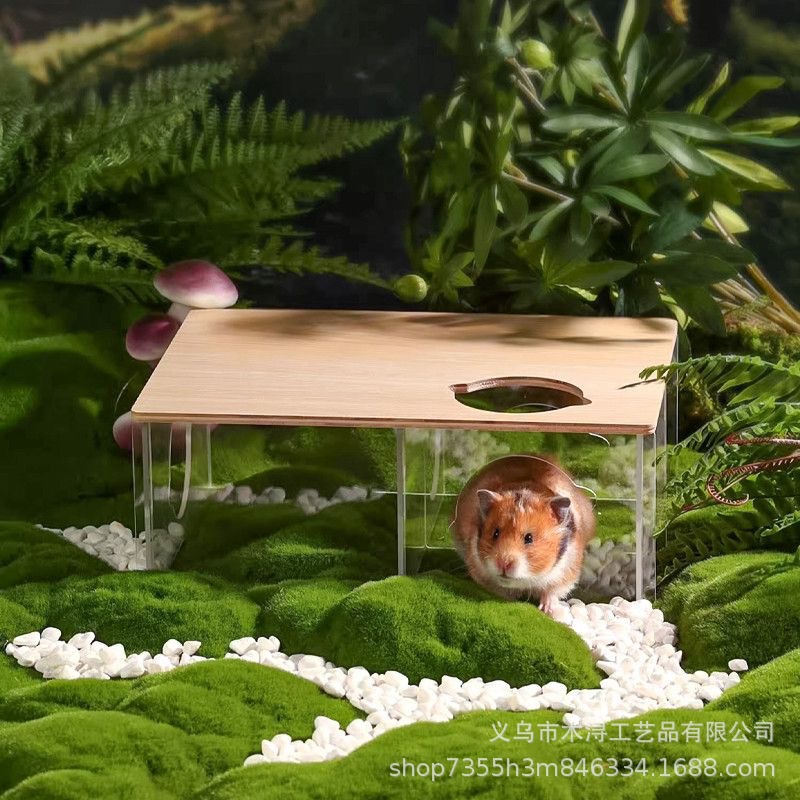 ハムスター巣実木透明アクリル避難屋金糸熊小家プラットフォーム用品実木造景玩具