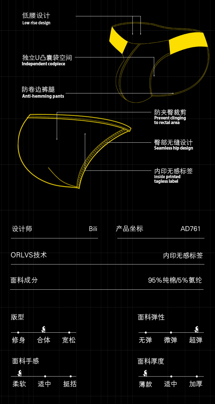 メンズ三角モーダル高弾性下着メンズ禁欲セクシーな特徴的なV字ウエストボーイズブリーフAD323