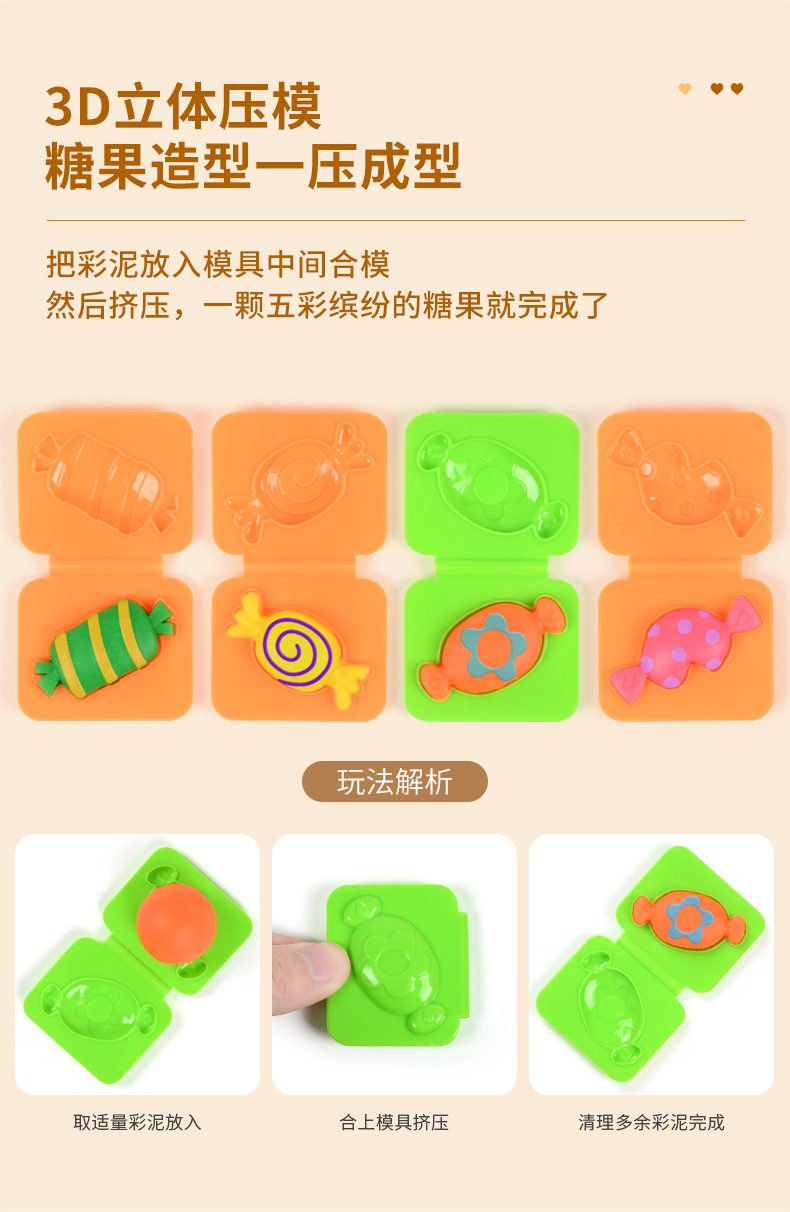 新商品のカラフルなキャンディーの色の泥の鋳型のセットのおもちゃの手作りの粘土の室内の子供のままごとのおもちゃ