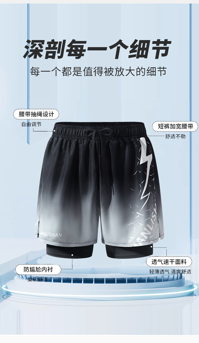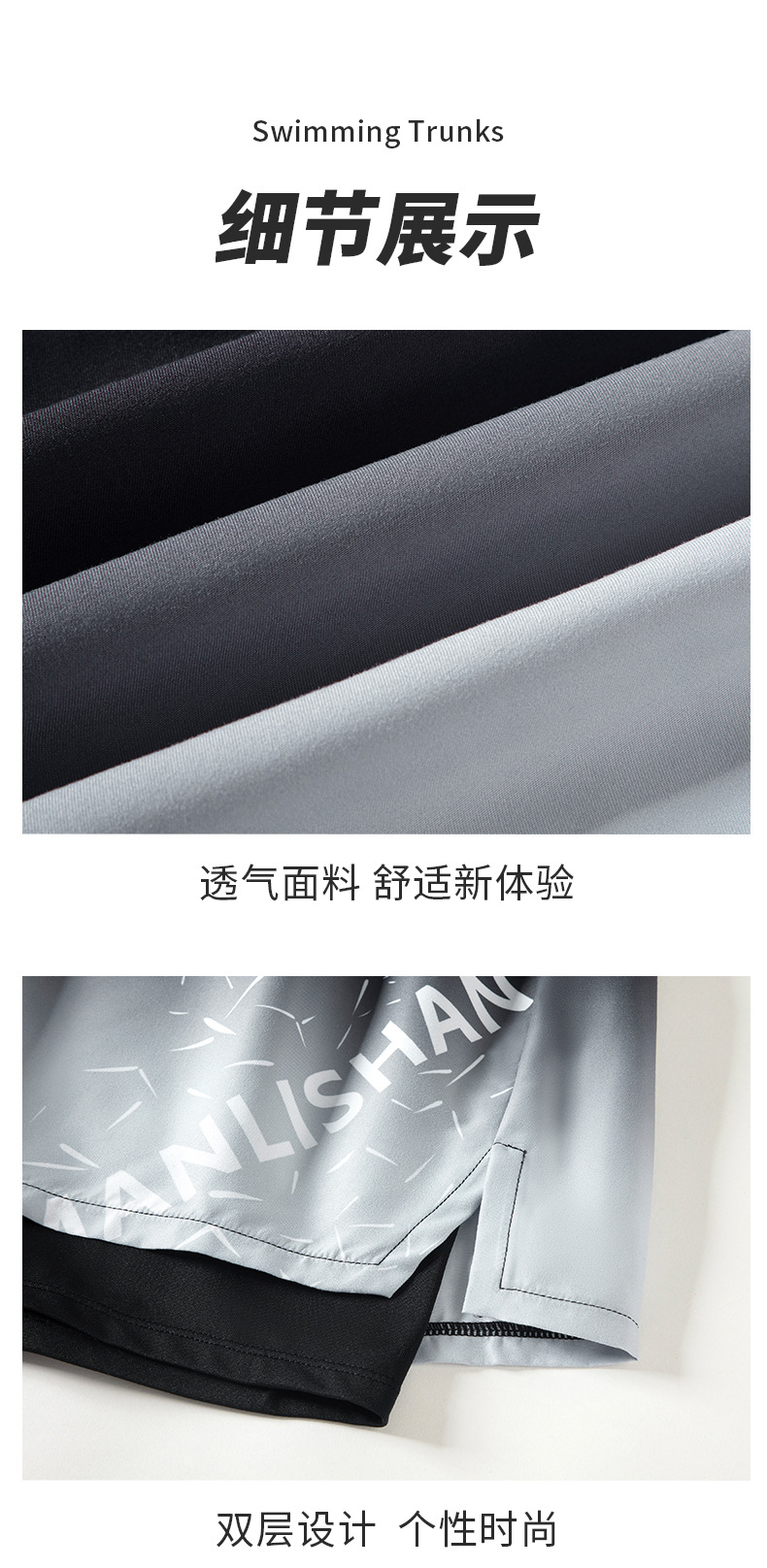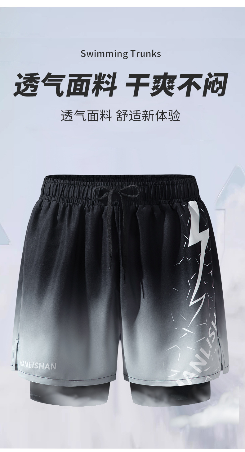 男性は二重速乾水泳パンツの大きいサイズの通気性が気まずい水泳パンツの新しいゆるい水泳パンツを2枚作った