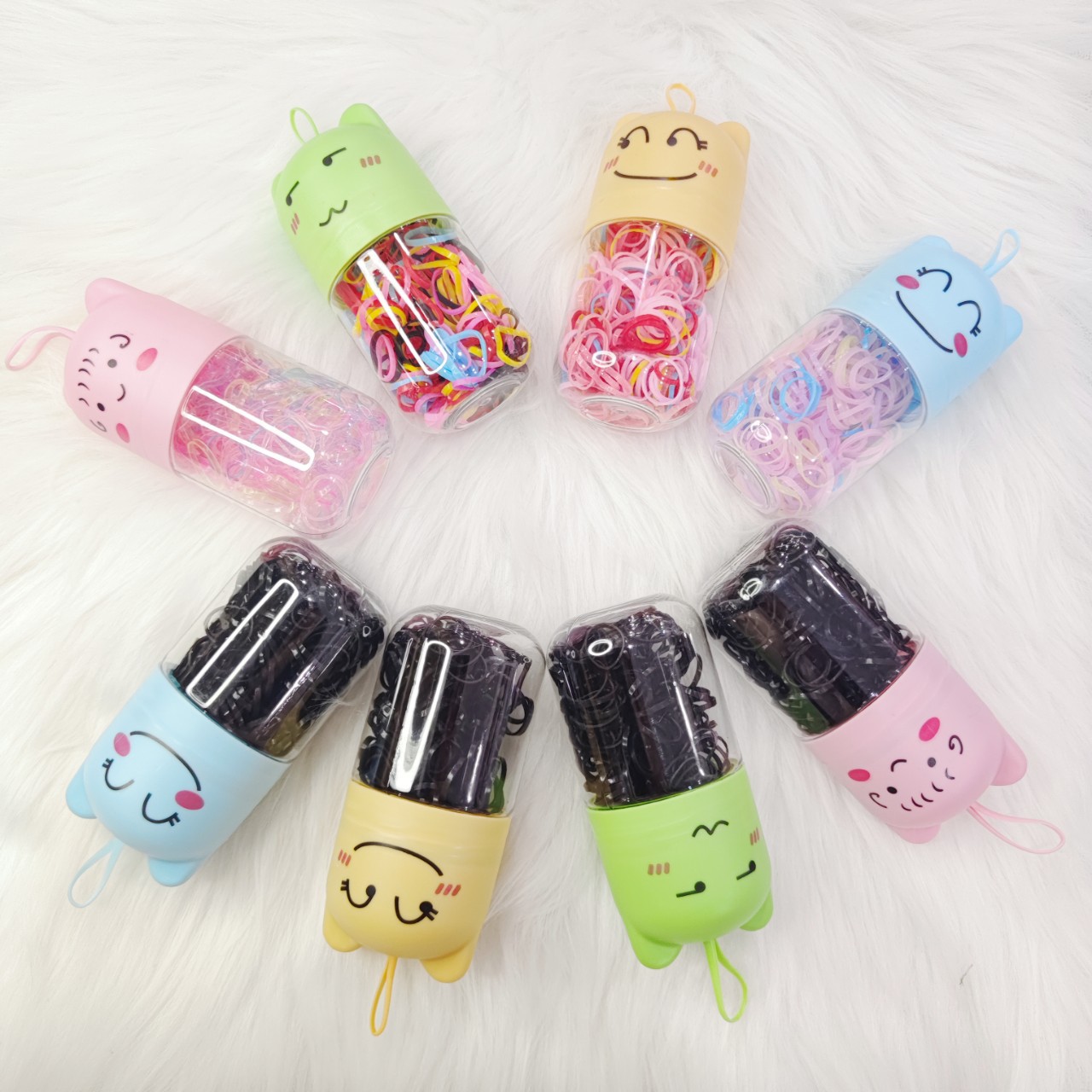 使い捨てゴムバンド、漫画キャラ入り缶入り子供用ヘアアクセサリー、強力な引っ張りにも耐えるヘアゴム、虹色のヘアゴム、卸売