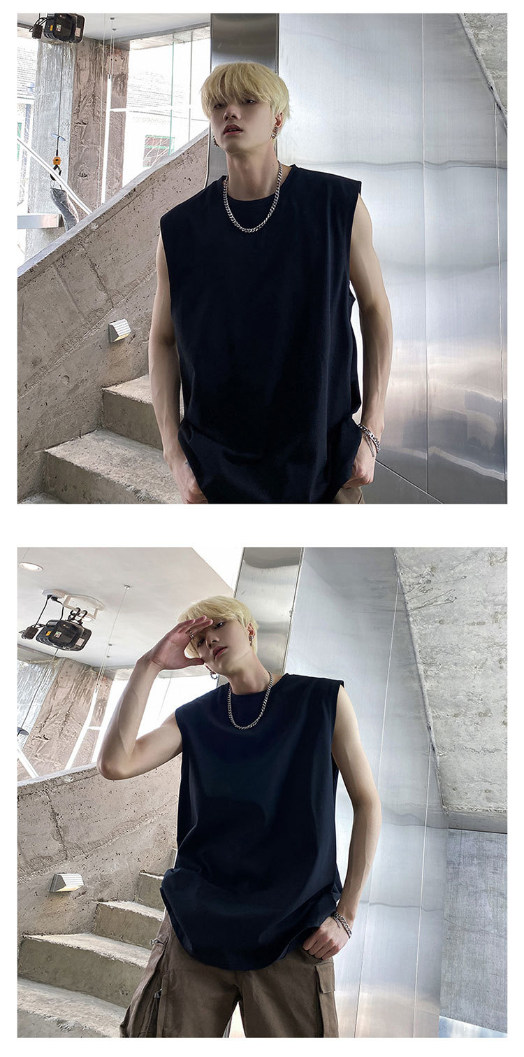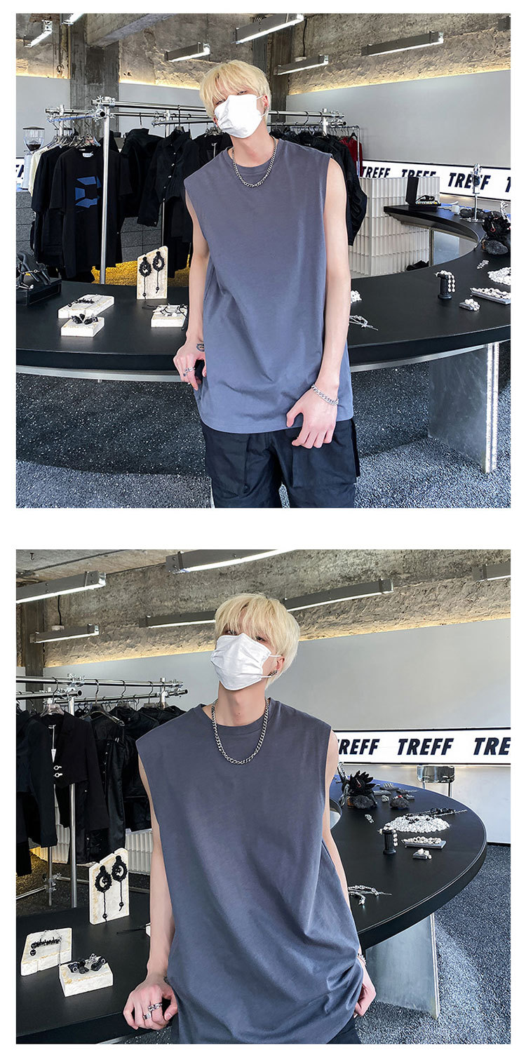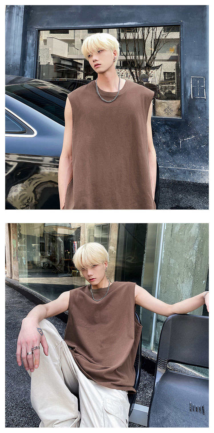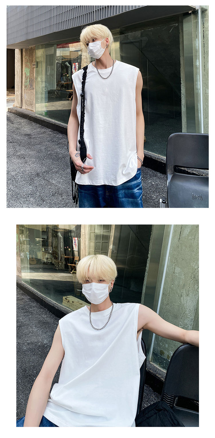男性半袖ベスト夏潮牌ins白純色ノースリーブキャンディシャツtシャツメーカー直販hy48