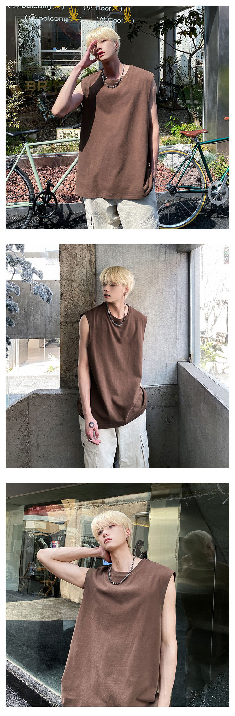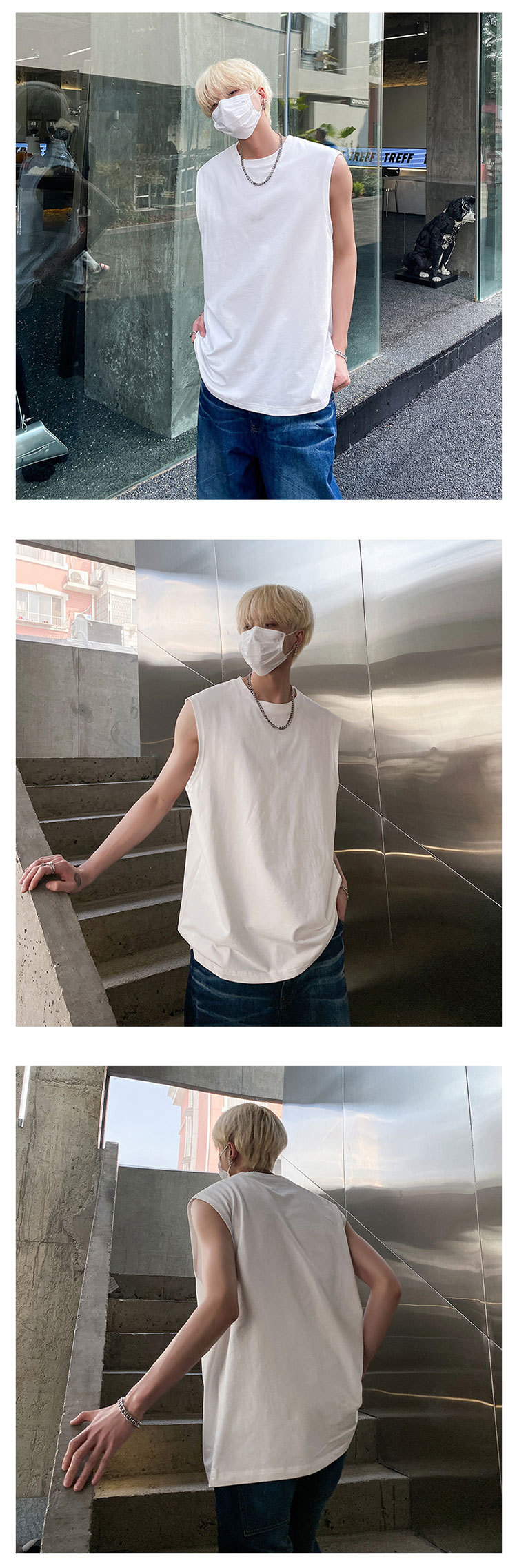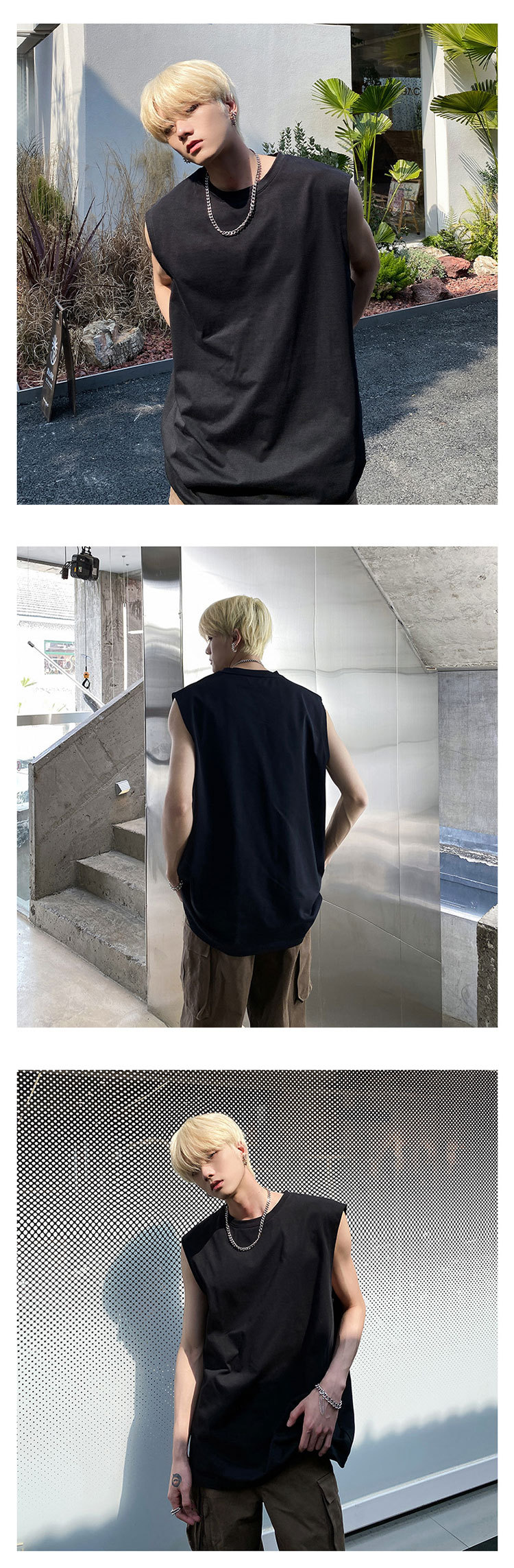男性半袖ベスト夏潮牌ins白純色ノースリーブキャンディシャツtシャツメーカー直販hy48