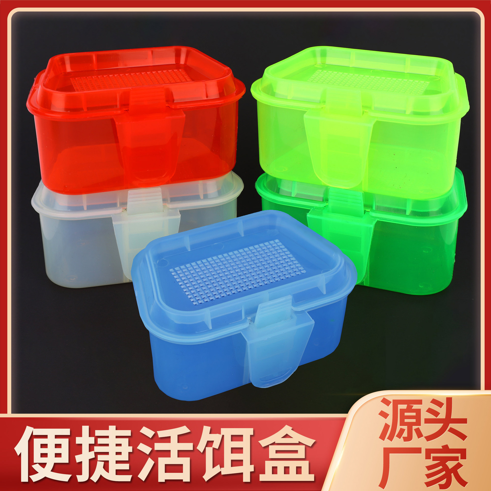 カラフルなプラスチック赤虫ボックス、透明ミミズボックス、乾燥防止、通気性のある生き餌ボックス、プラスチック生き虫ボックス、釣具アクセサリー