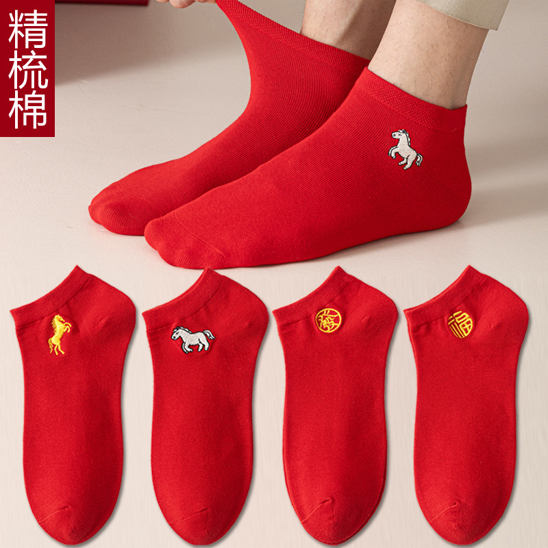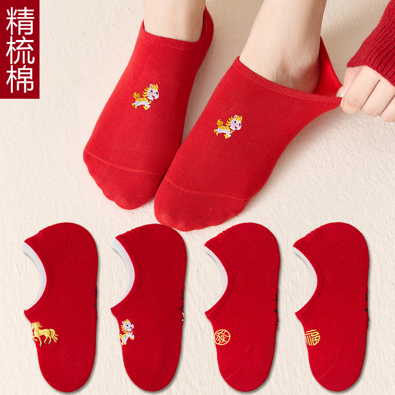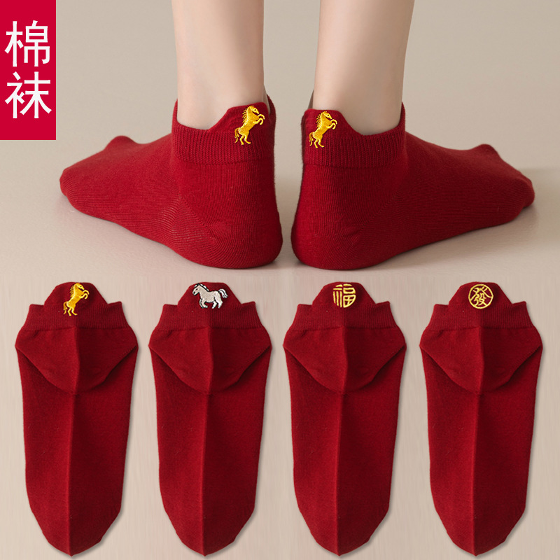 红袜子本命年男女情侣袜红色船袜短袜小人袜属马年棉袜薄款新年袜