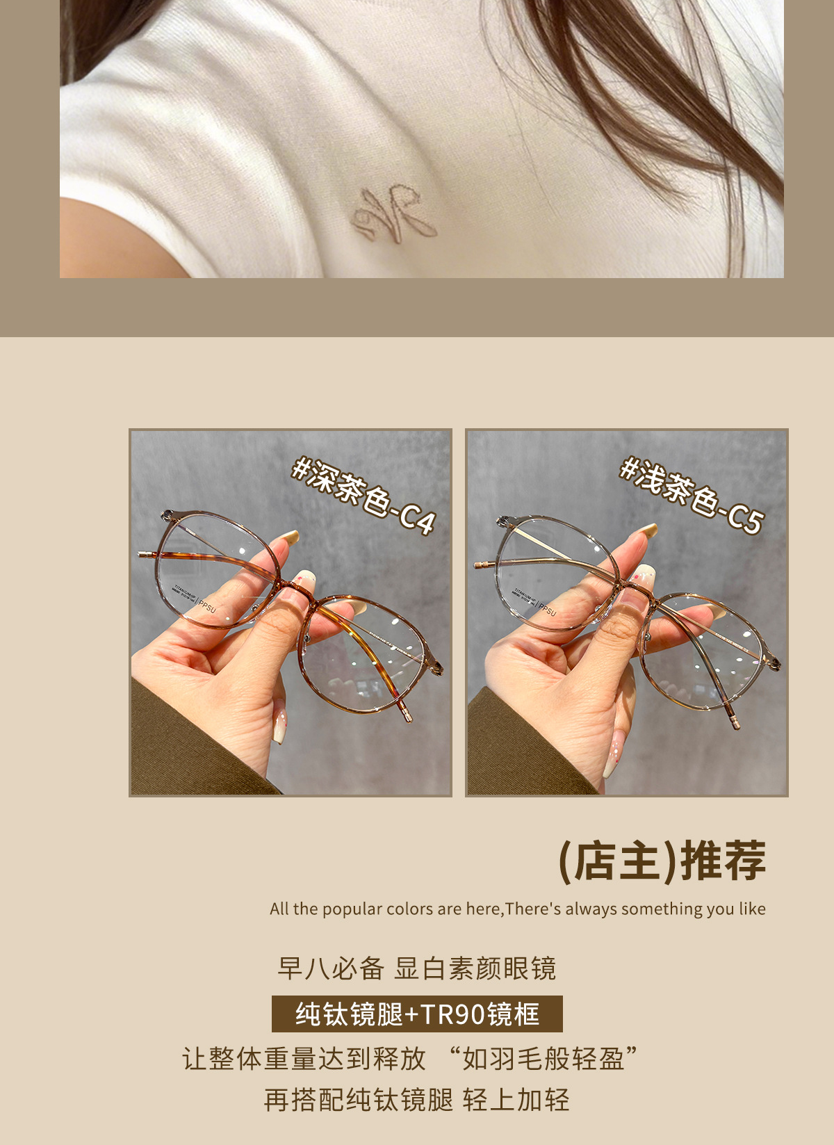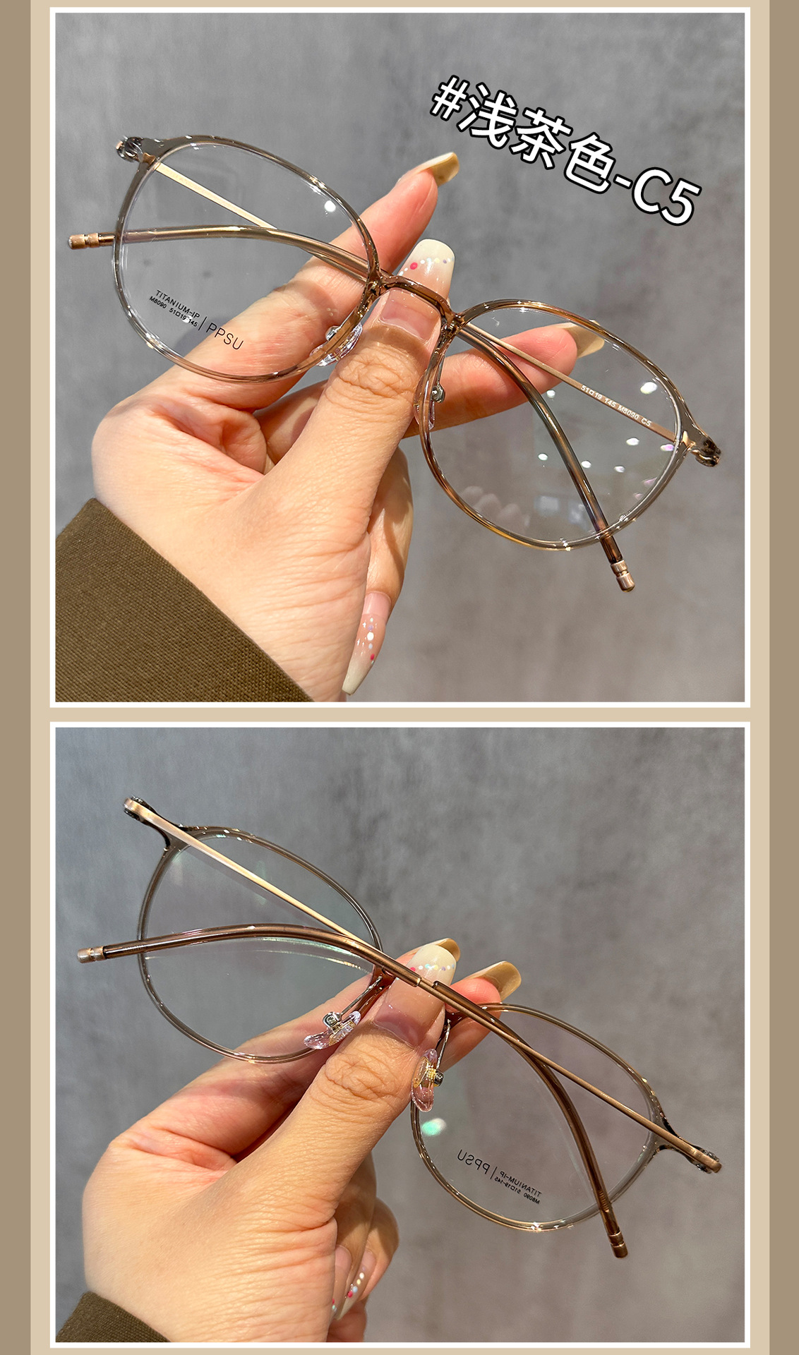 冷茶色韓超軽量純チタン眼鏡フレーム女子小フレーム眼鏡フレーム近視眼鏡卸売り9108丹陽チタンフレーム