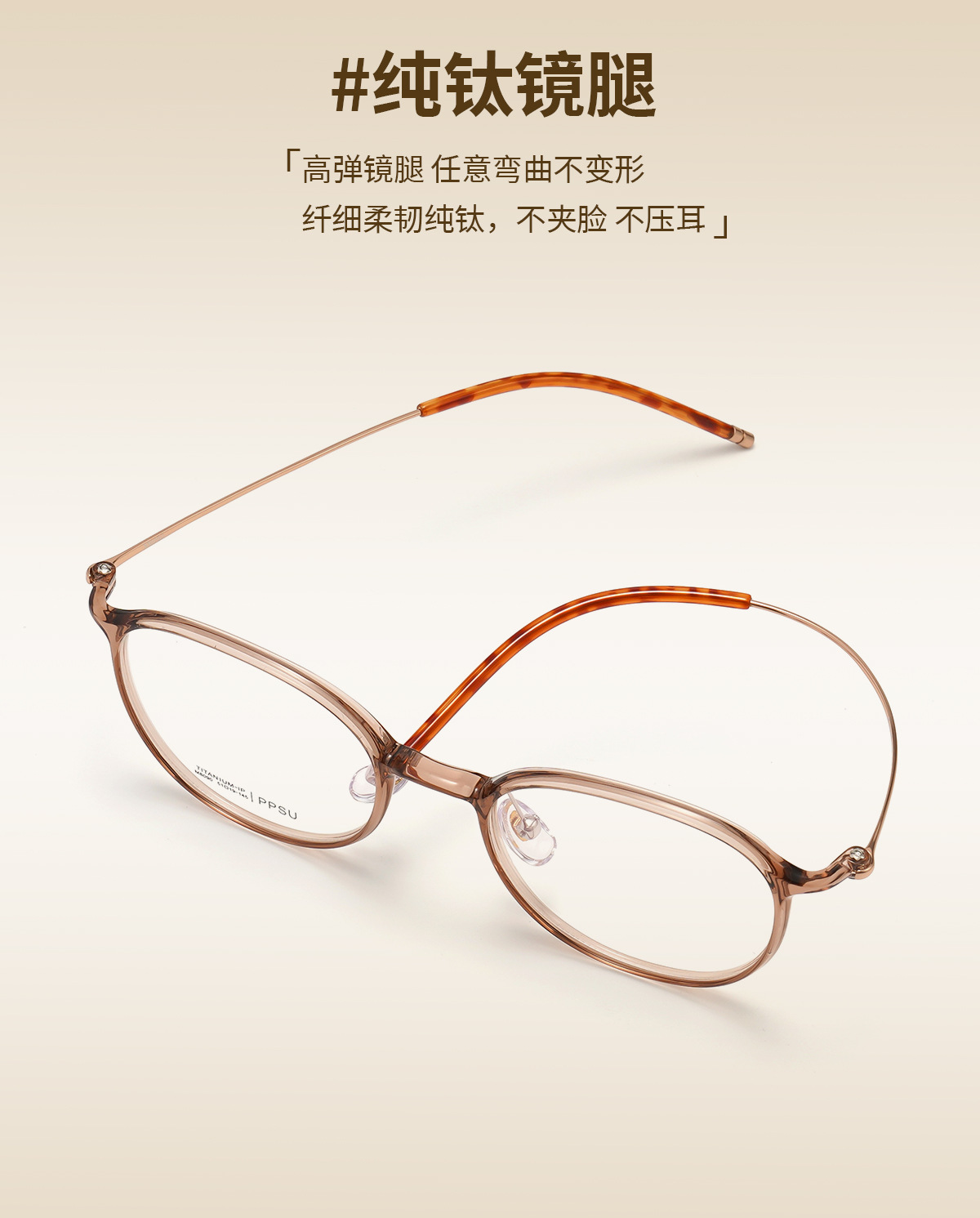 ネットセレブ すっぴん 純チタンフレーム 8045 コールドブラウン 近視メガネフレーム 女性用 高級感あり 丹陽メガネ