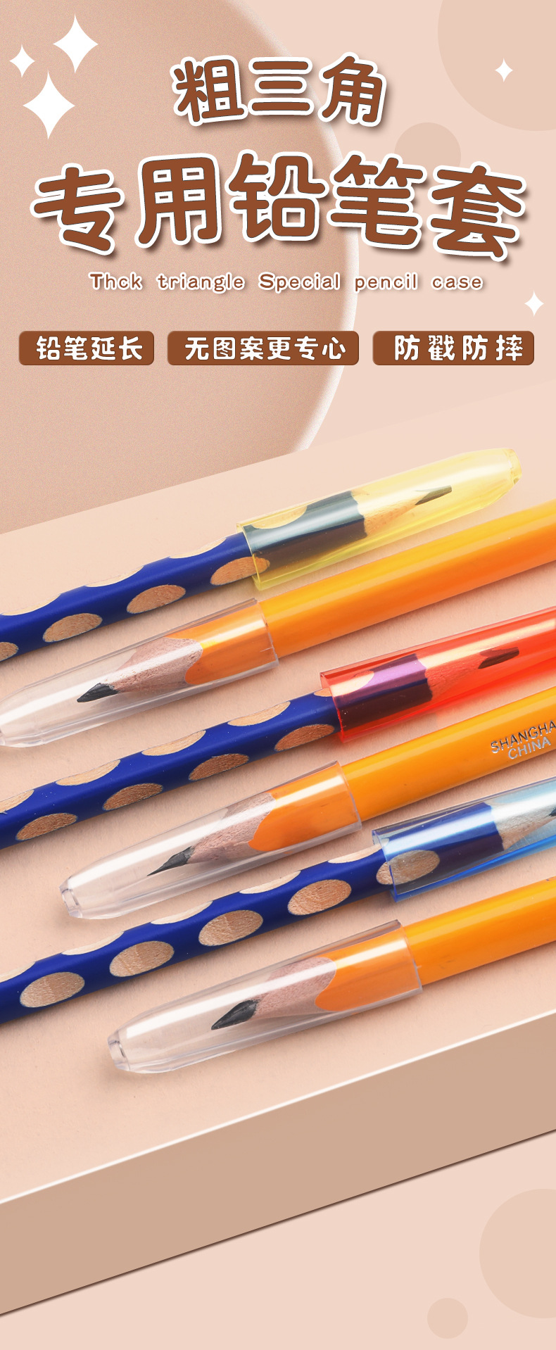 透明大三角鉛筆キャップキャンディー色小学生カラー鉛筆保護カバー子供延長器ペンキャップ鉛筆