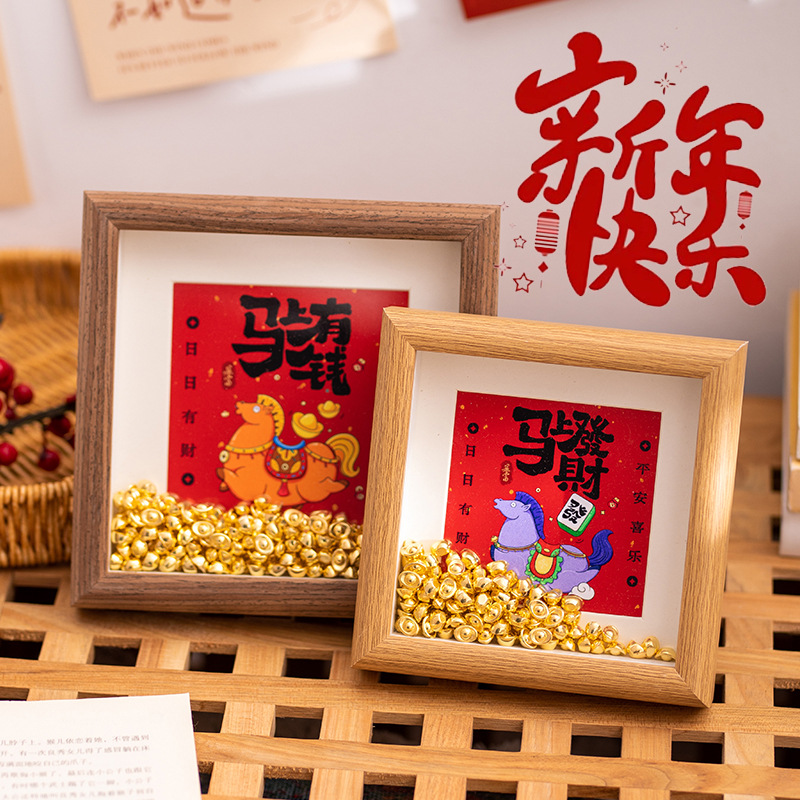 新年相框2026马年春节马上有钱装饰画框客厅喜庆吉祥氛围元宝摆件