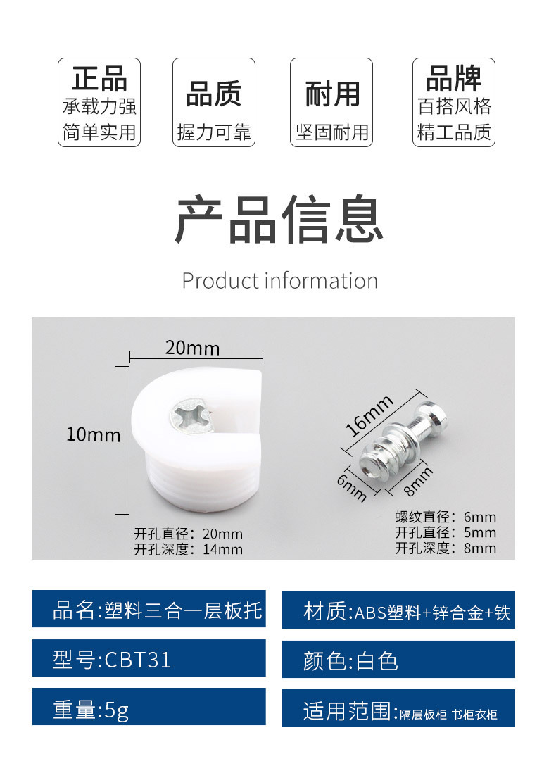 プラスチック合金の仕切り板の支えの吸盤のタンスの酒のタンスの支えの板の支えの釘の家具の金属の部品の卸売り