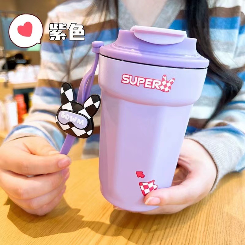 知能測温保温カップ携帯児童コップ女子学生韓国版かわいいアニメうさぎカップ彫刻