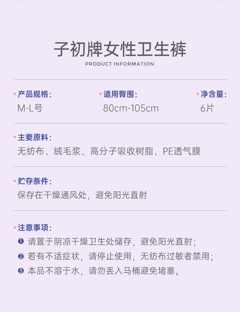 子初蚕丝安睡裤女经期防漏卫生裤产后安全裤安心裤夜用裤型卫生巾