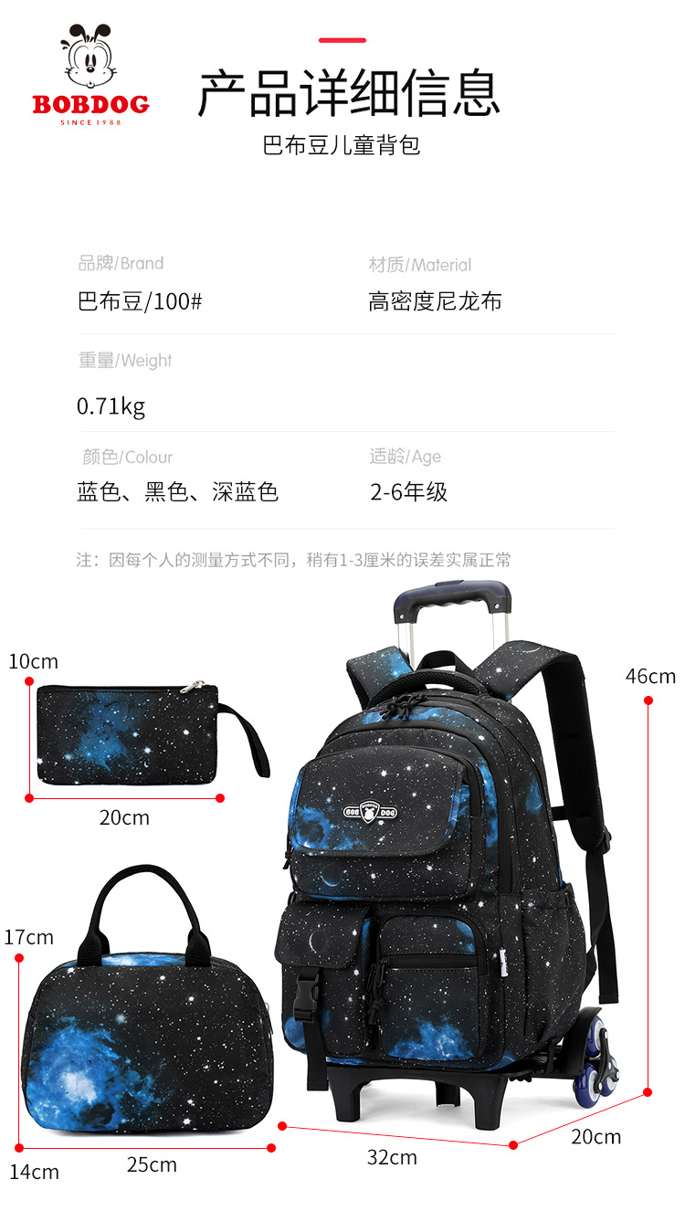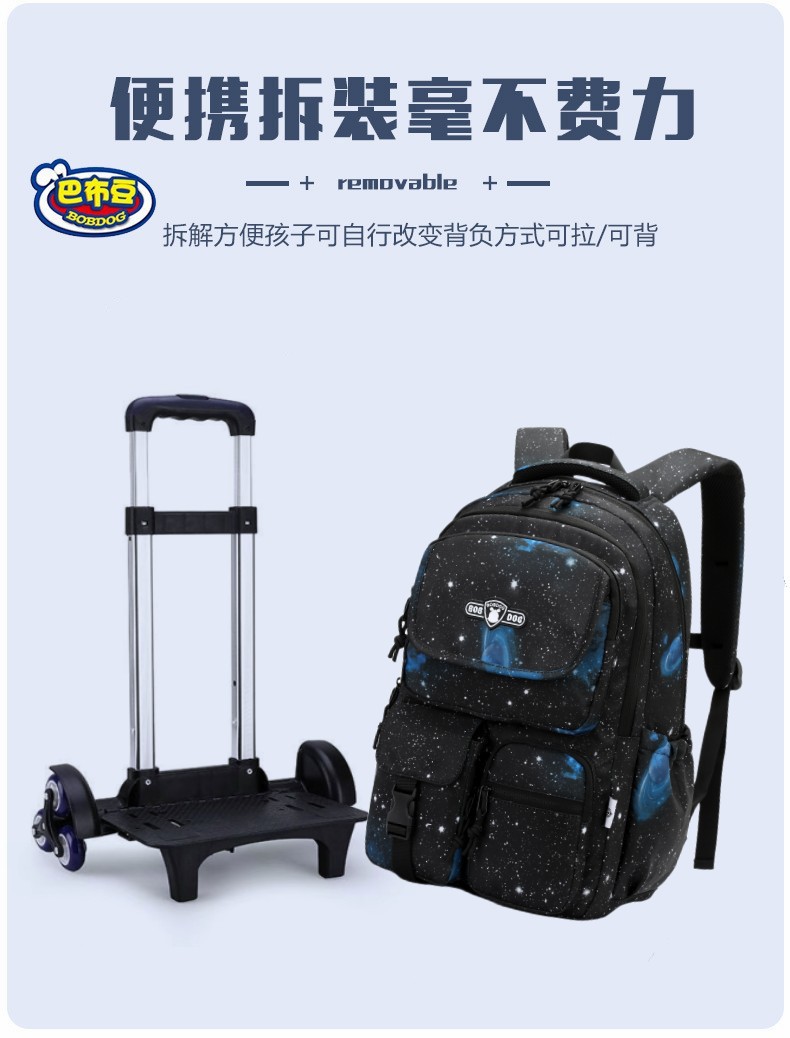 儿童书包2-6年级男童小学生书包大容量减负宇航员拉杆双肩背包