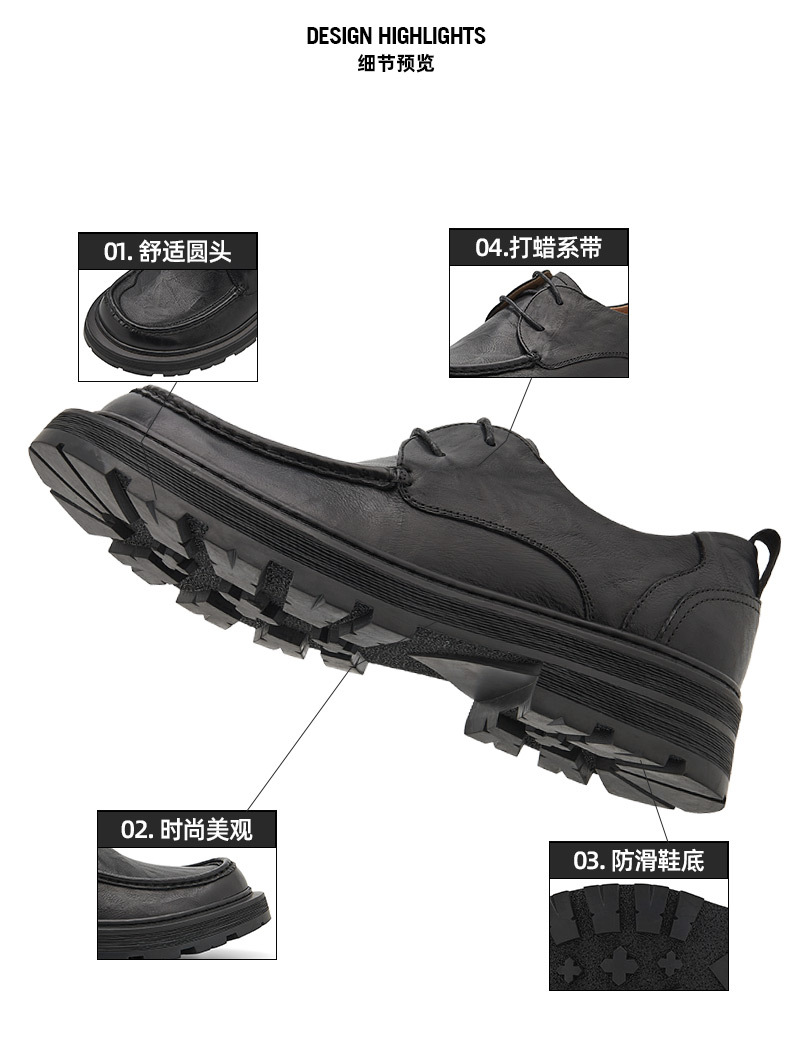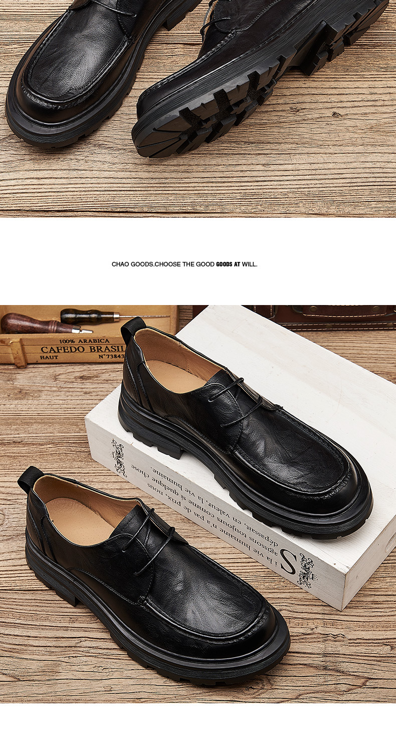 春の新作黒紳士靴、英国風厚底、ラウンドトゥ、カジュアル革靴、ワイドサイズ、シンプルワークシューズメンズ