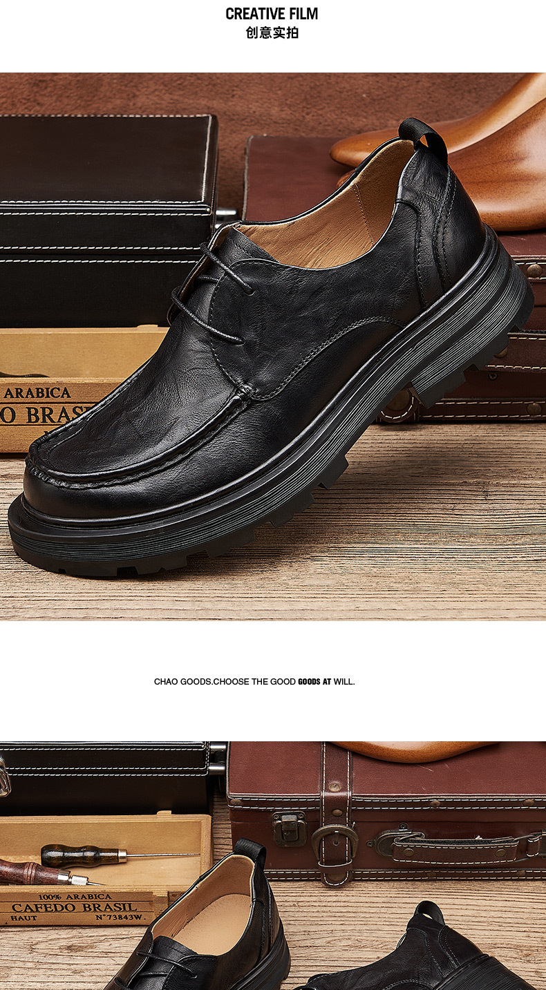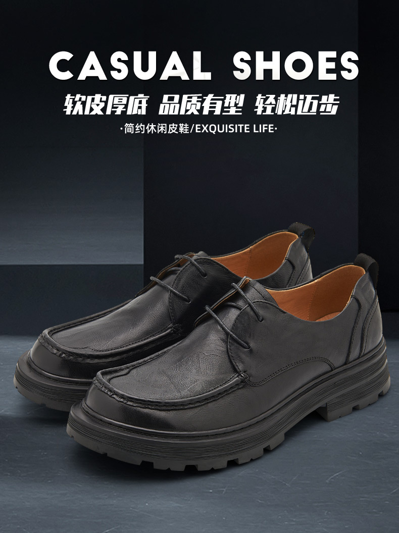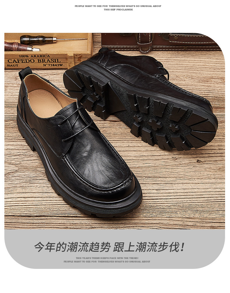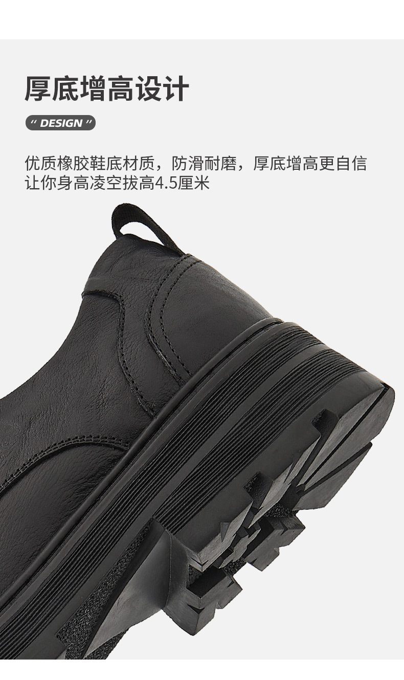 2025春秋商务休闲皮鞋男厚底增高德比鞋英伦风黑色正装工作鞋