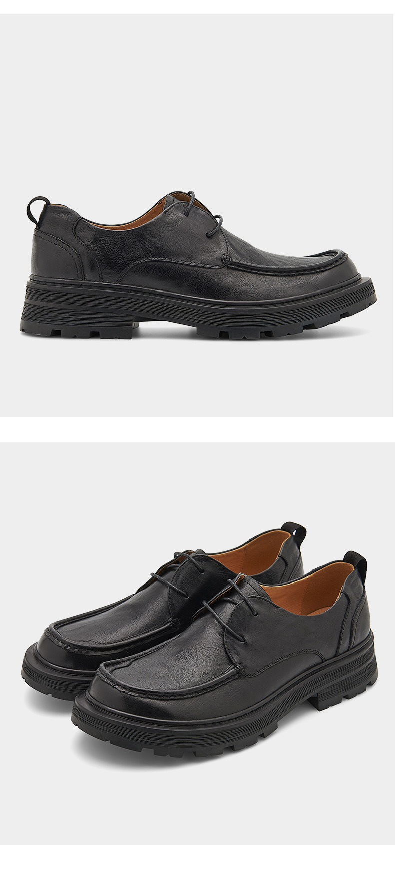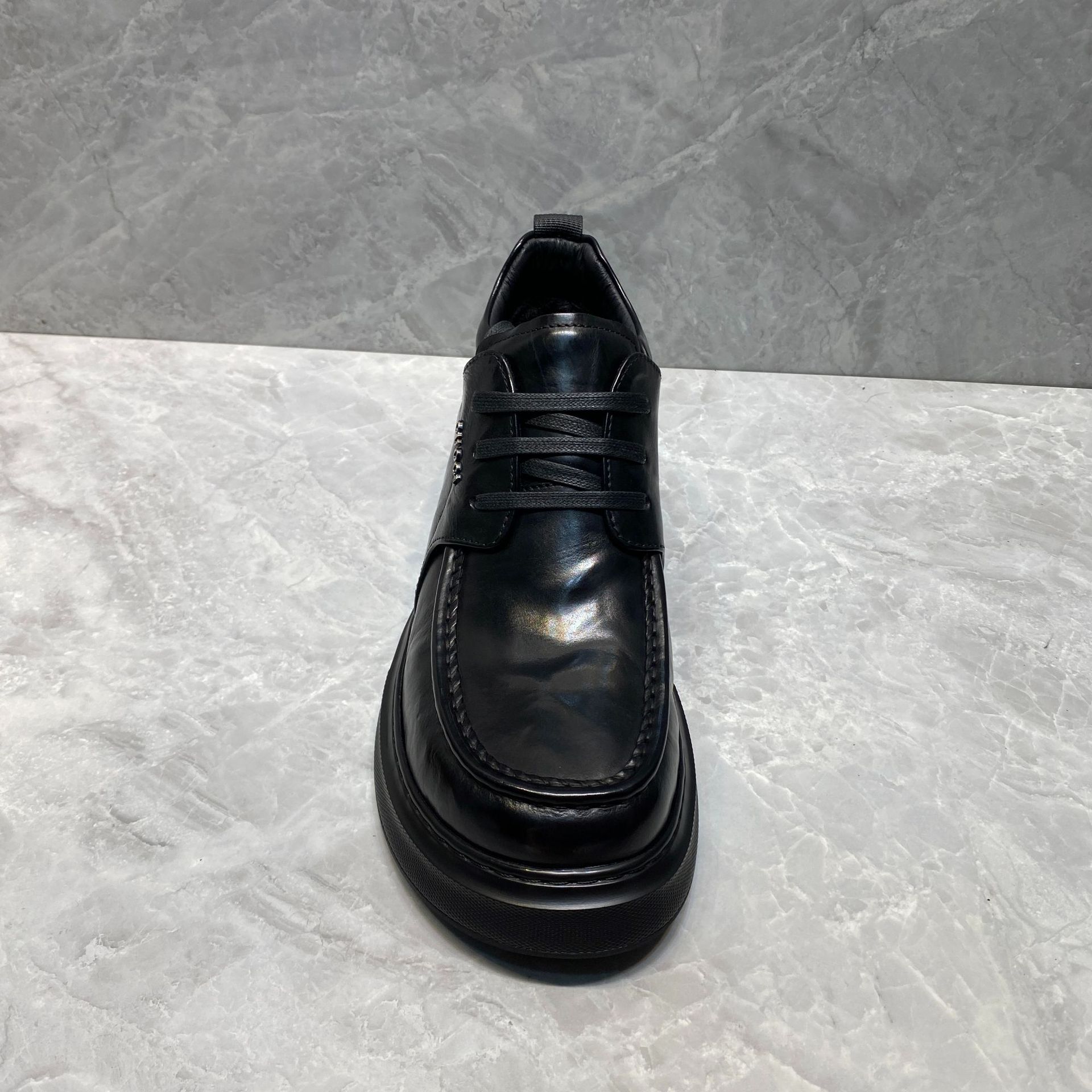 2025春の新型黒メンズダービー靴はファッション靴の英倫風の厚い底が高くなります。