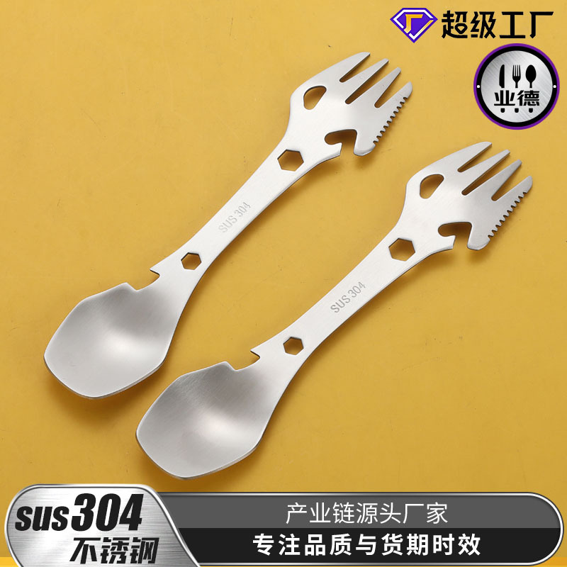 勺叉一体304不锈钢多功能创意旅行露营用品随身携带勺开瓶器餐具