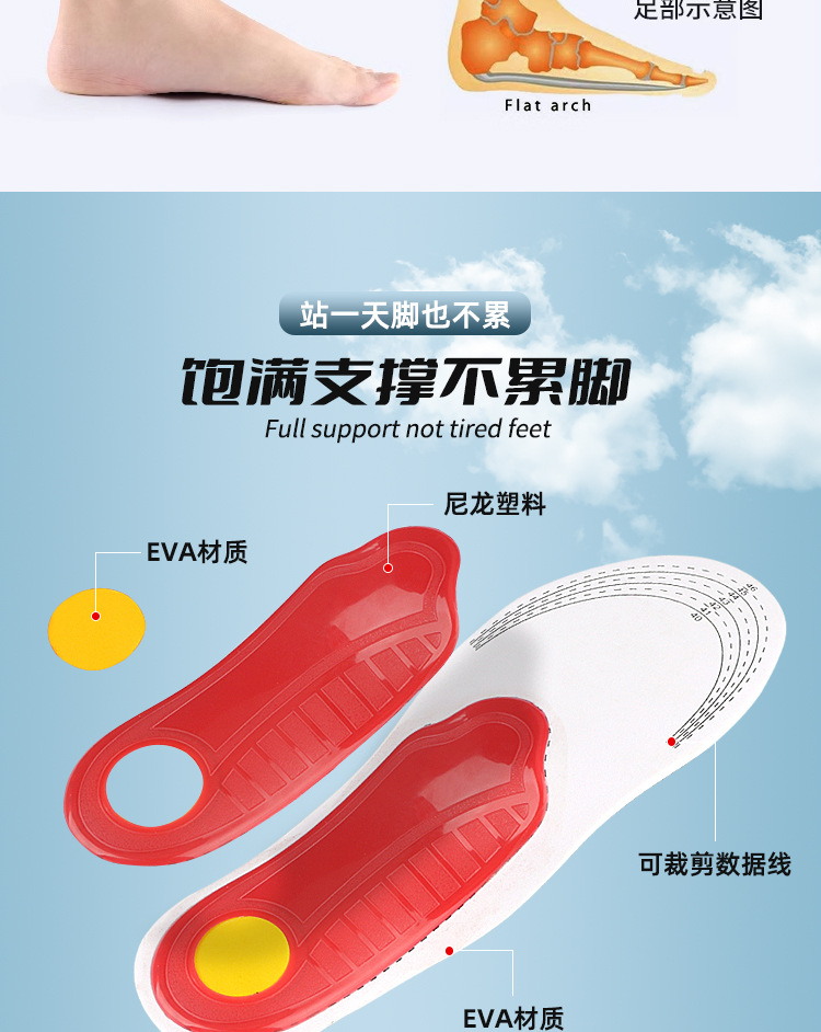 Evaインソール耐震緩圧通気耐摩耗性軽やかで快適な足弓矯正サポートインソール男女共通