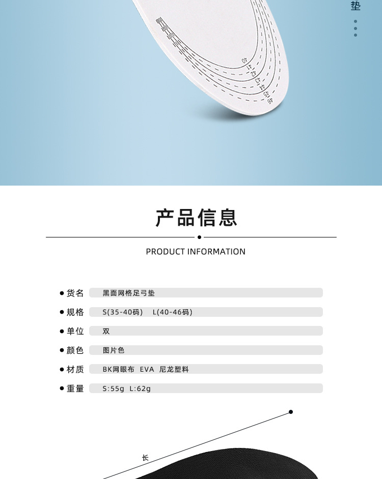 アーチサポート補正ブラックメッシュスポーツ衝撃吸収インソール高弾性EVA男性と女性の偏平足インソール補正