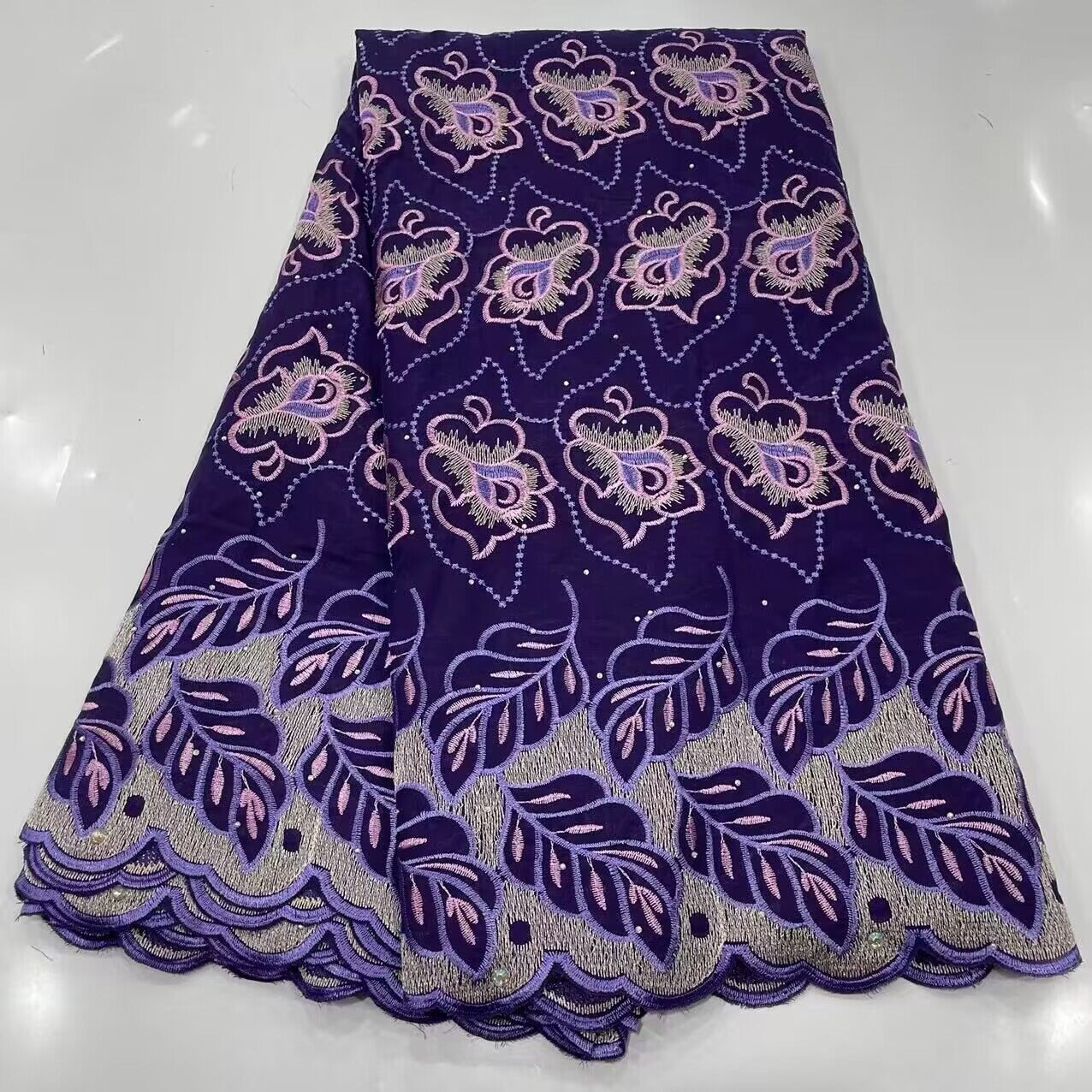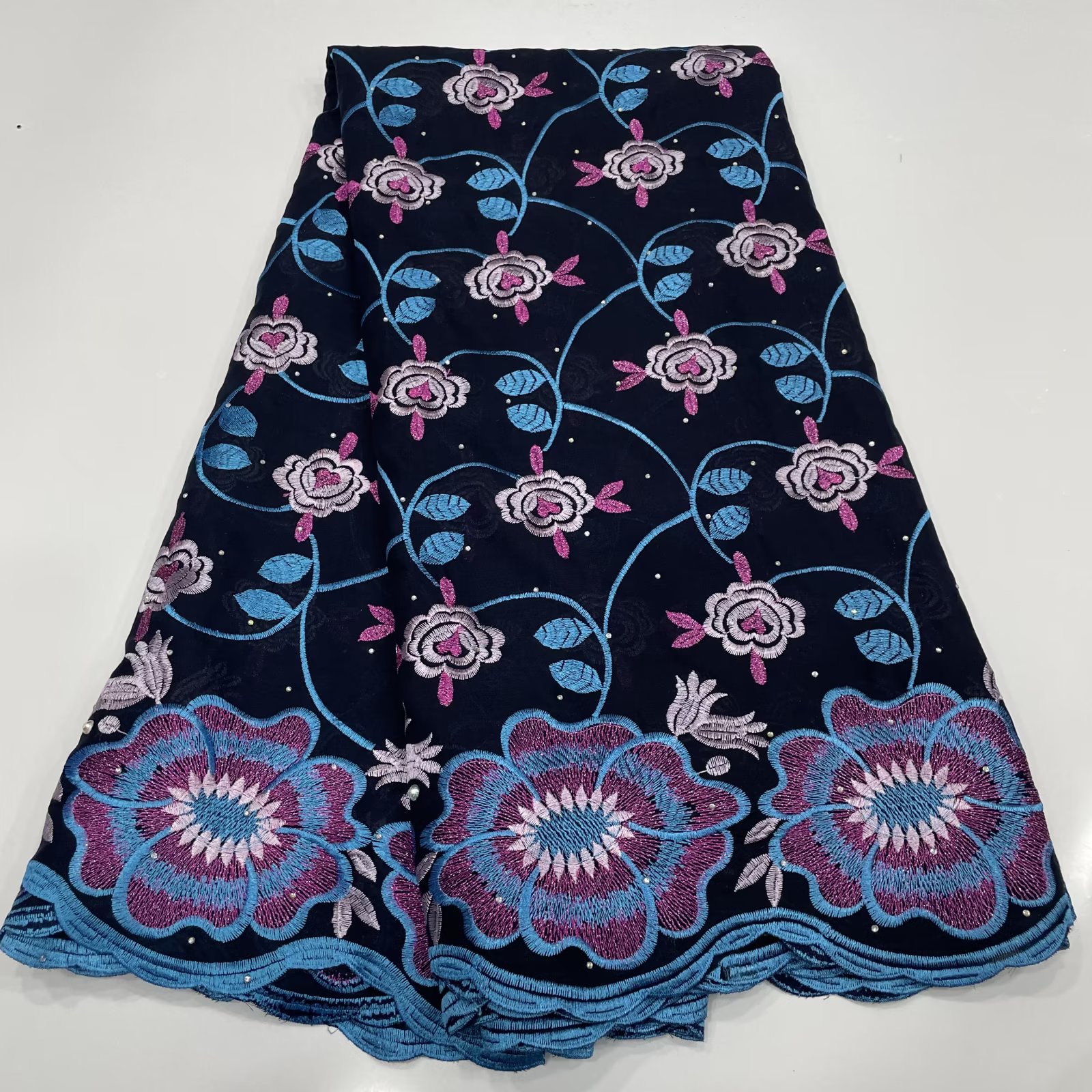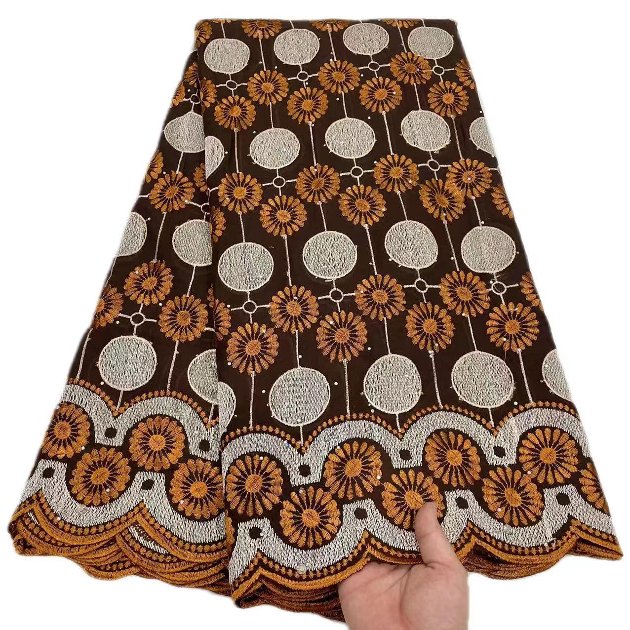 5yard Swissコットン花刺繍綿生地アフリカ生地