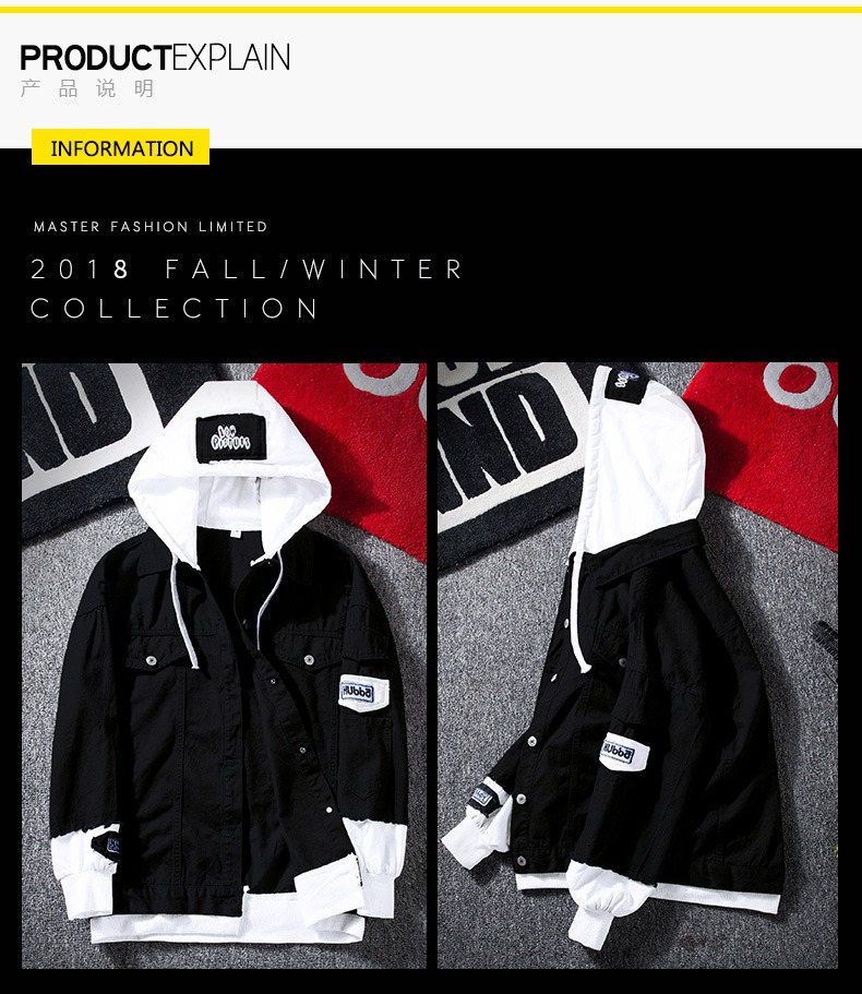 秋の帽子付きカウボーイコート男性韓国版ファッションカジュアルな上着春秋タイプのカップルの偽ジャケット