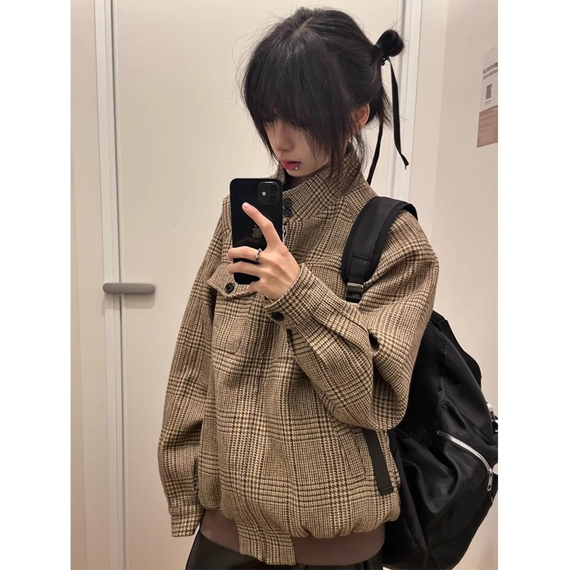 美式千鸟格哈灵顿羊毛夹克男款春秋款高级感短款立领cleanfit外套
