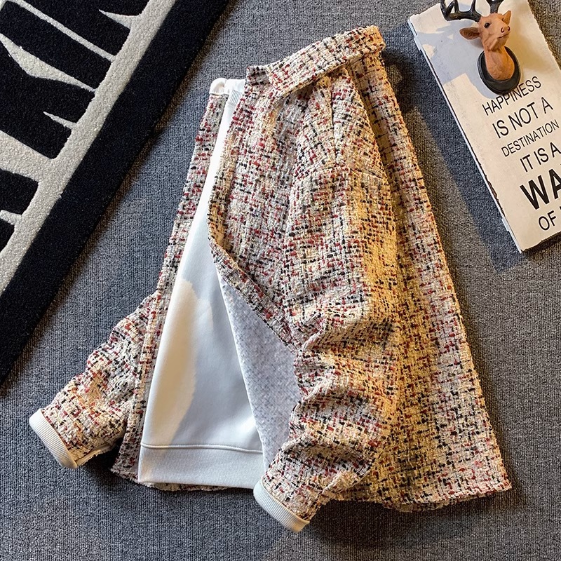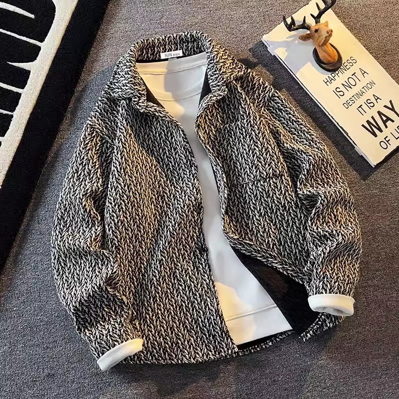 小香風コート男ゆるいカジュアルカーディガンジャケット秋冬金とベルベットの格子シャツ