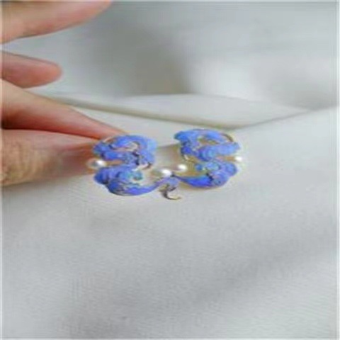 新中式国潮百搭ファッションエナメルデザイン花線象嵌工芸模造真珠祥雲国風イヤリング卸売