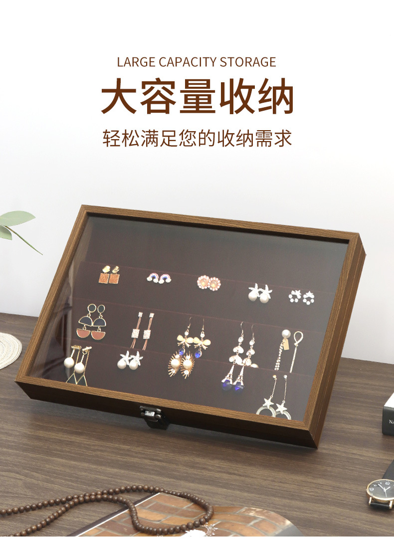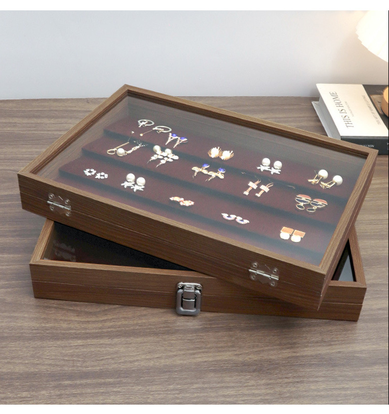 花梨木紋紙アクセサリーケース蓋付き防塵イヤリングピアス収納ケース大容量指輪ネックレスブレスレットケース