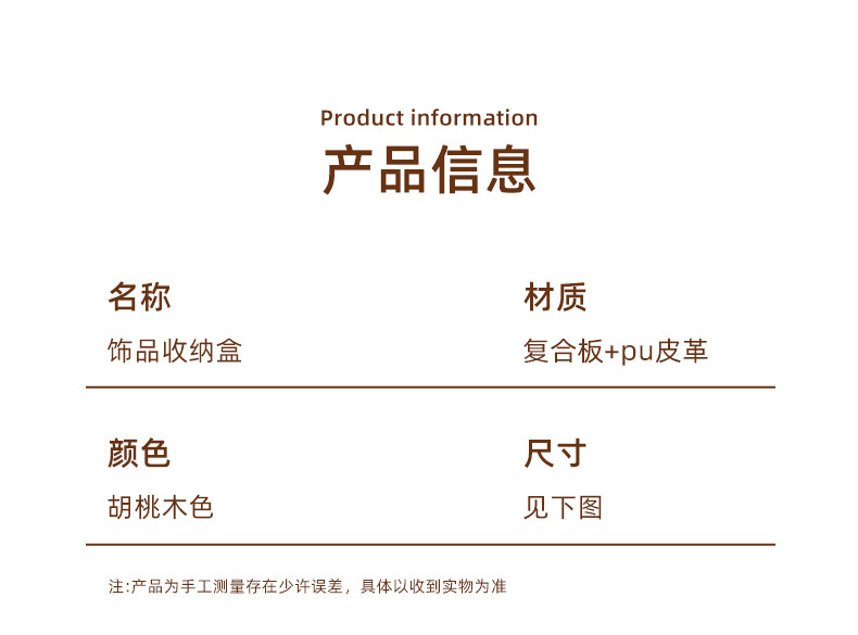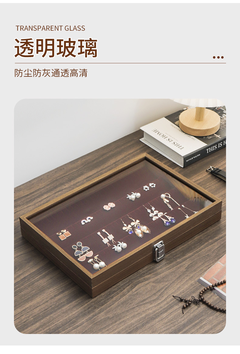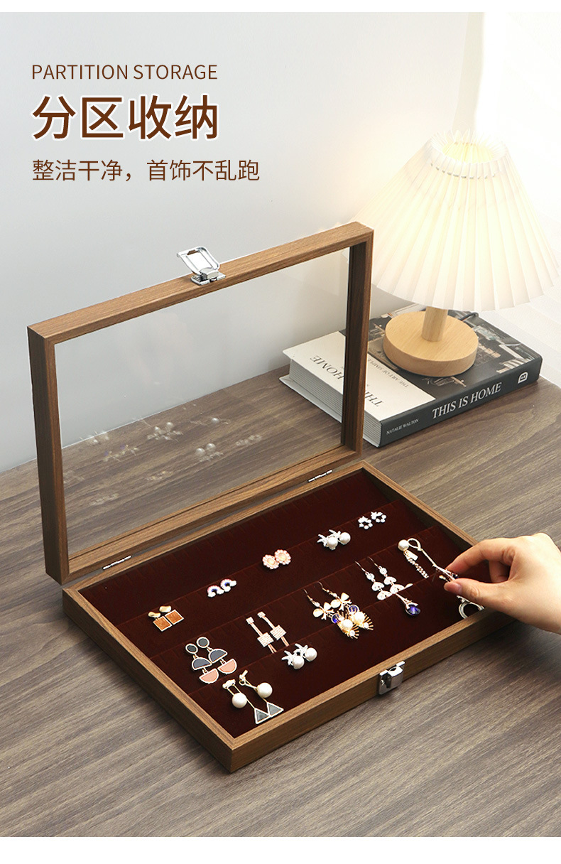 黑胡桃木纹小号珠宝箱饰品展示架戒指手镯耳钉耳环项链首饰收纳盒