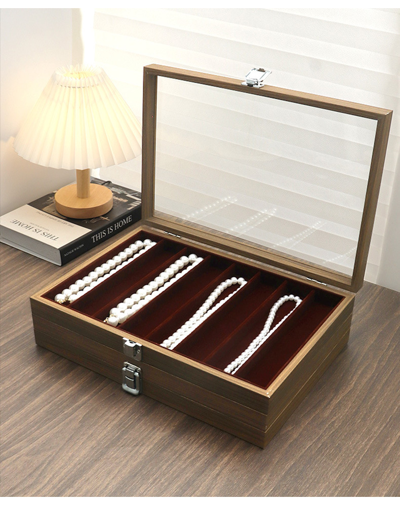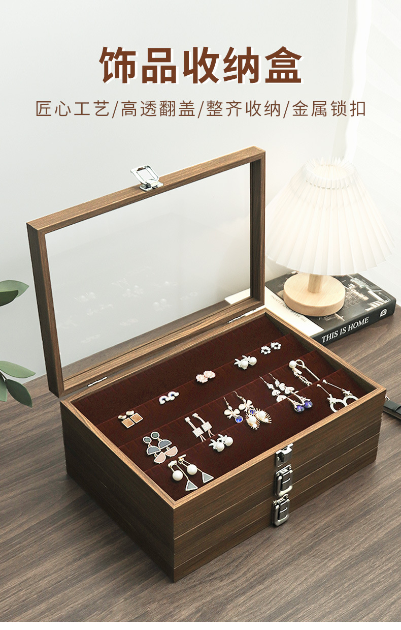 クロスボーダー新作ブラックウォールナット多機能ネックレスイヤリングジュエリーボックス(蓋付き、防塵、ブレスレットジュエリー収納ボックス)