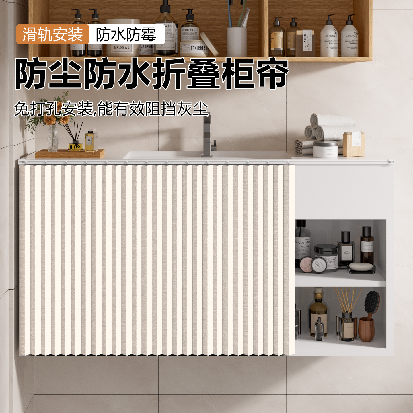 洗手台折叠帘防水遮挡柜帘橱柜杂物柜遮丑布短帘卫生间浴室柜帘子