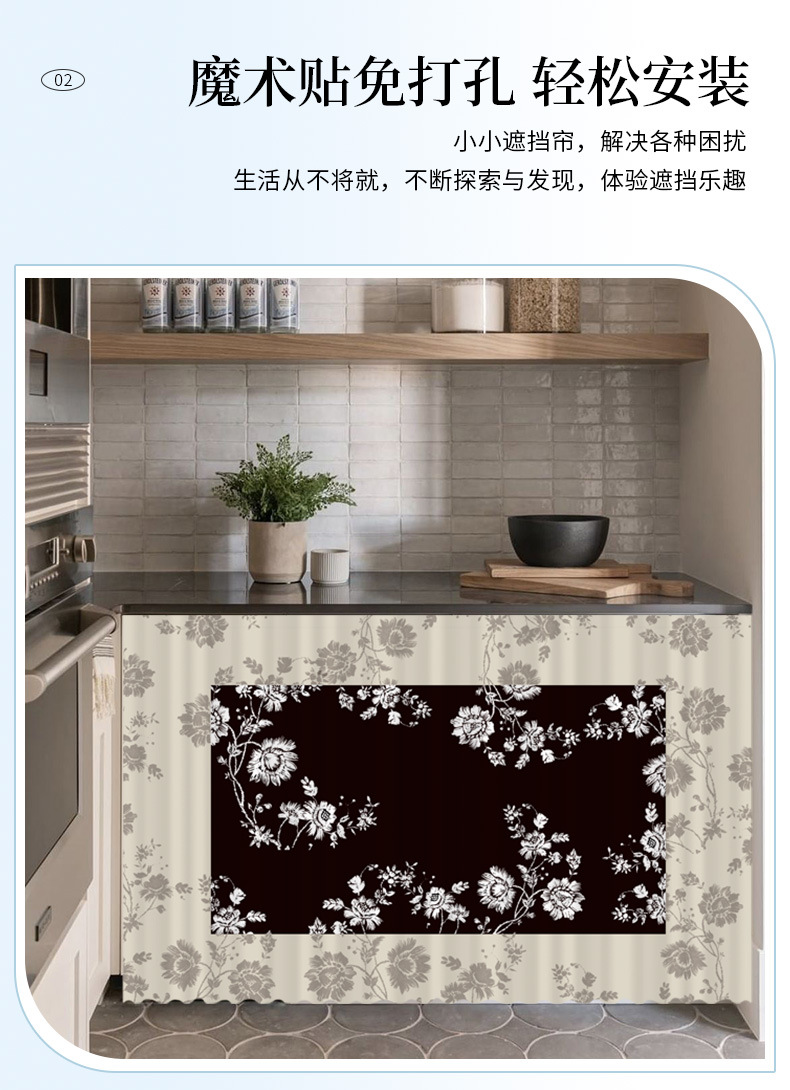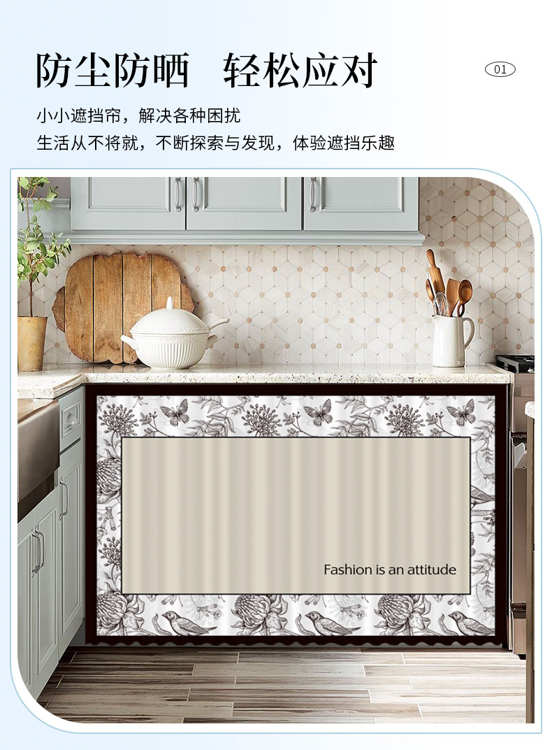 免打孔遮挡帘橱柜门帘布帘台柜子帘子厨房帘防尘遮丑柜帘魔术贴