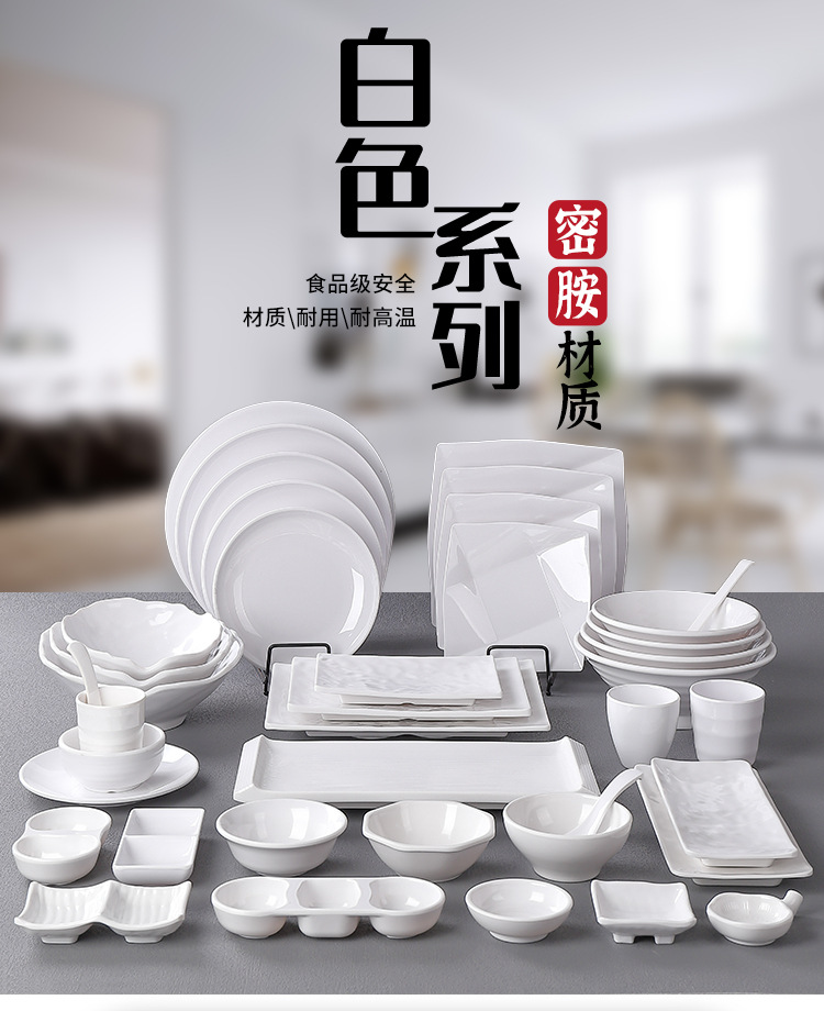 メラミン皿商用円盤ホテルレストランのファーストフードの冷たい皿の腸の粉の皿は磁器の炒め物の皿の丼の皿をまねます。
