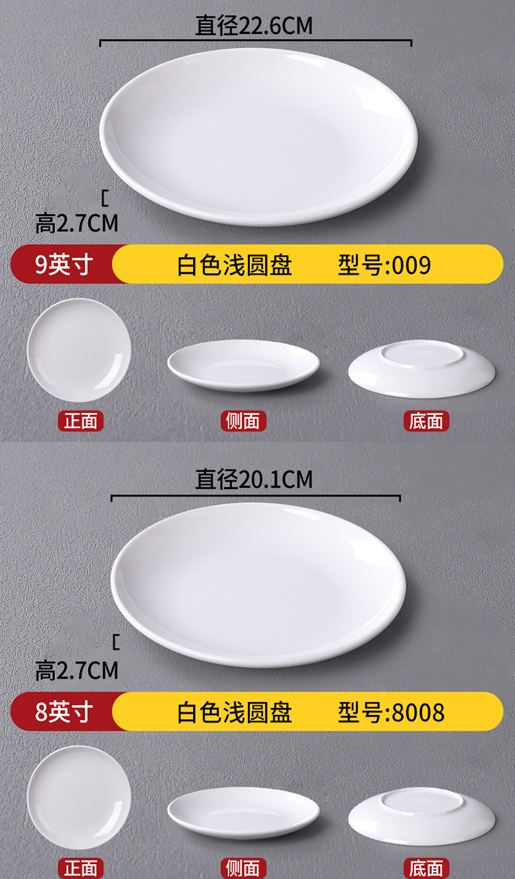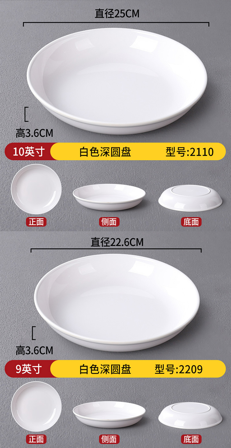 メラミン製丸皿 プラスチック製 模造磁器 丸皿 業務用 レストラン セルフサービス ファーストフード 丼物皿 冷菜皿 骨皿 平皿