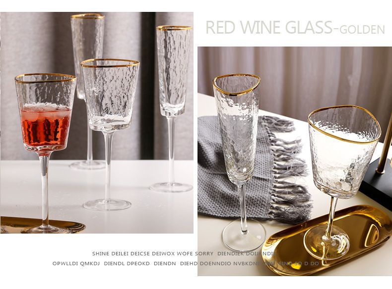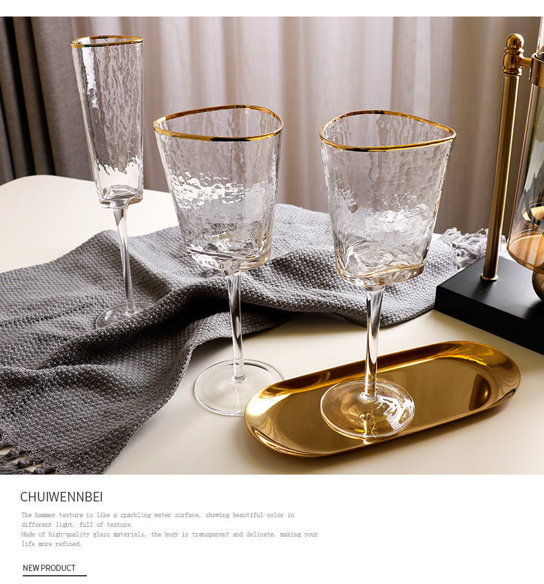 同人ハンマー目紋描金辺水晶ガラスワイングラス三角カップシャンパンカップヨーロッパ風高脚ワインカップ