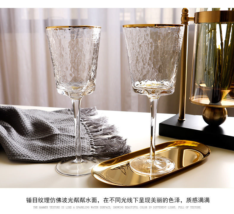 創意ハンマー目紋描金辺ピンク灰色水晶ガラスワイングラス見本間シャンパンカップヨーロッパ風高足カップ
