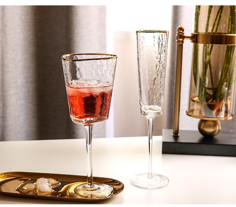 ハンマー金辺グラス北欧レトロ水晶高足杯金辺シャンパンカップ描金ウイスキーグラス