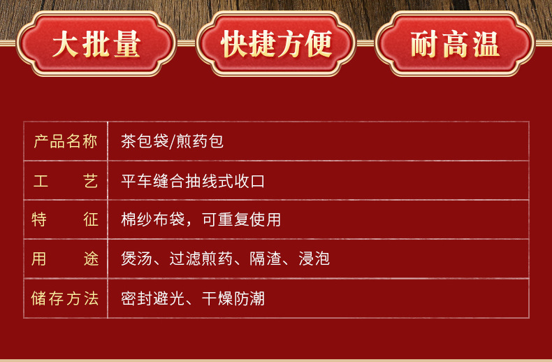 メーカー卸売り15 * 20cm煎じ薬袋煮茶濾過袋足浴綿布袋